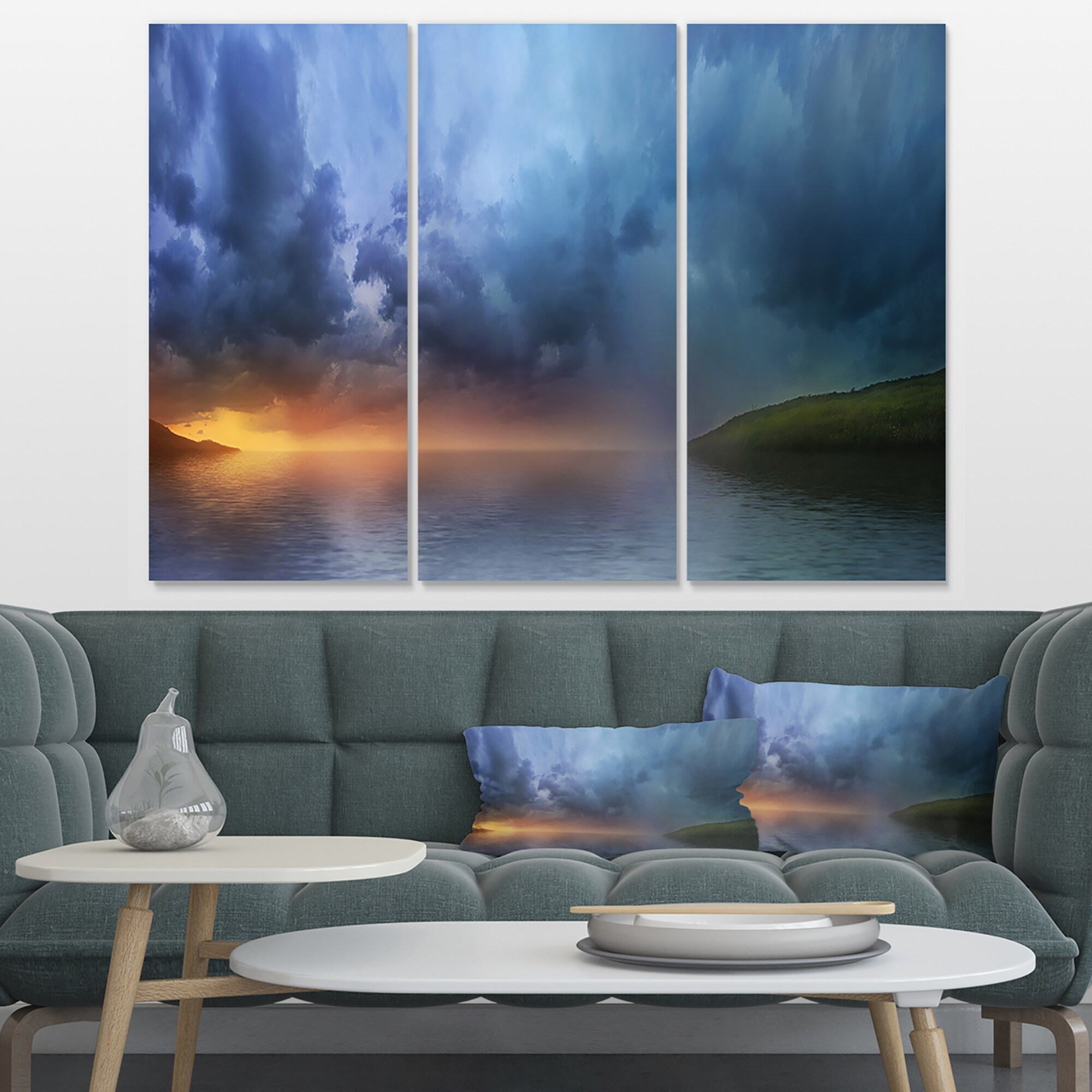 Designart "Dense Blue Clouds Over Lake" Skyline Photography Canvas Art