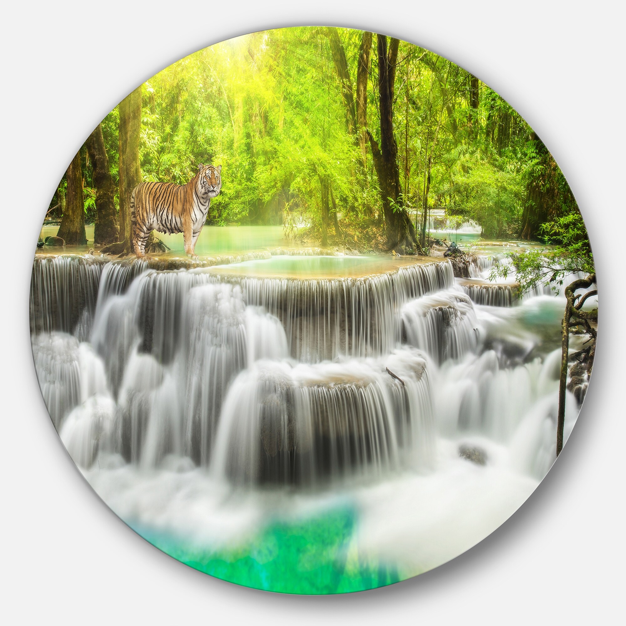 Designart 'Erawan Waterfall in Kanchanaburi' Photography Round Wall Art