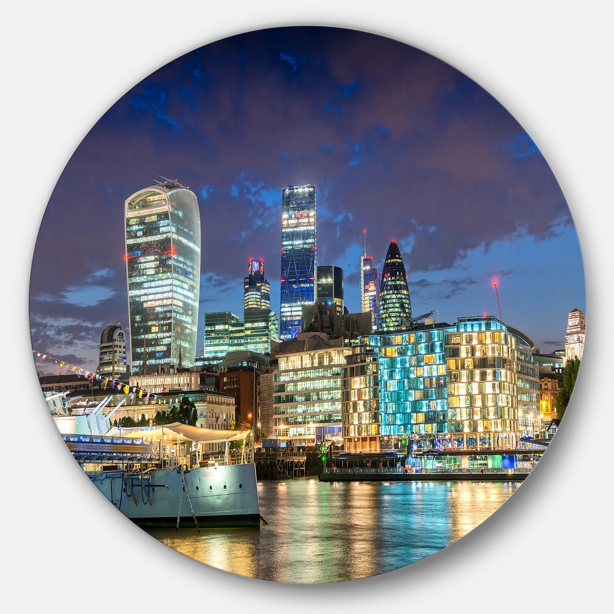 Designart 'Thames River at Night' Cityscape Photography Large Disc Metal Wall art