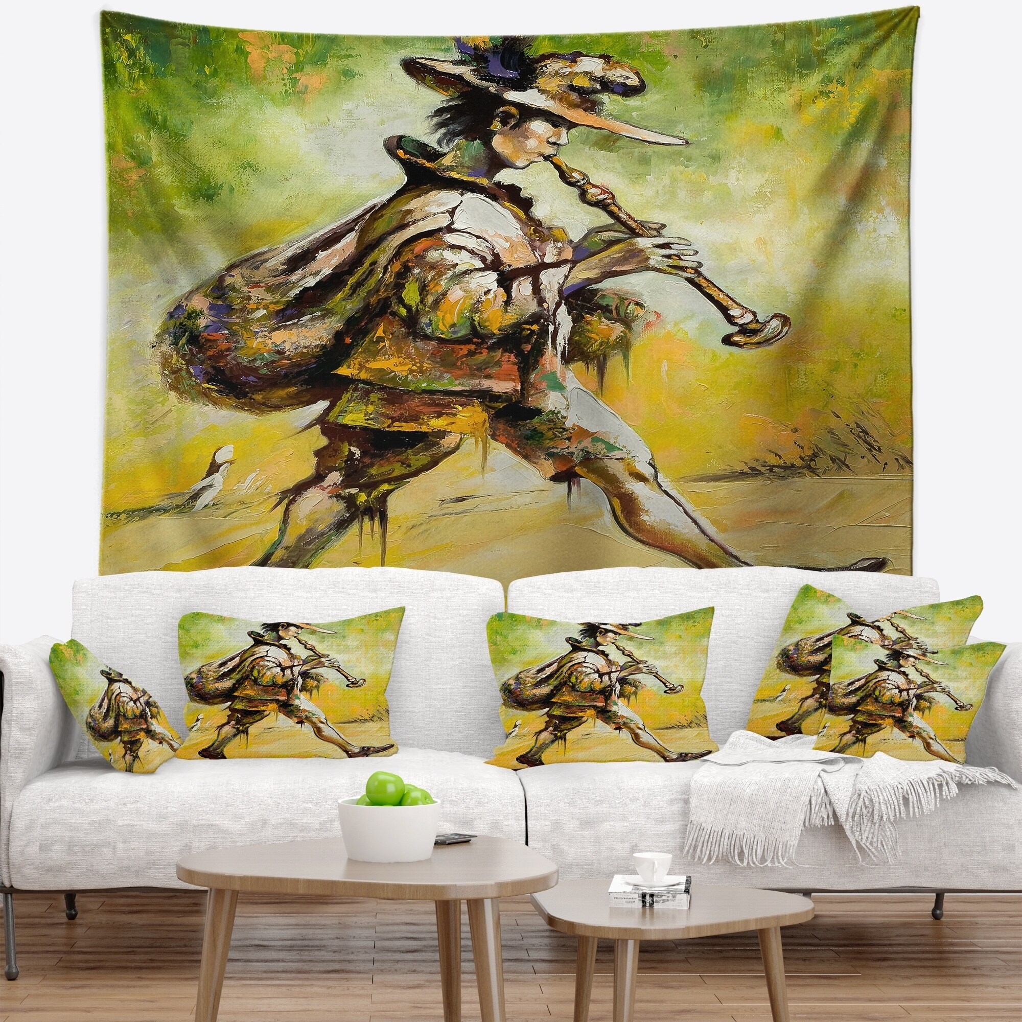 Designart 'Wandering Troubadour with Pipe' Music Wall Tapestry
