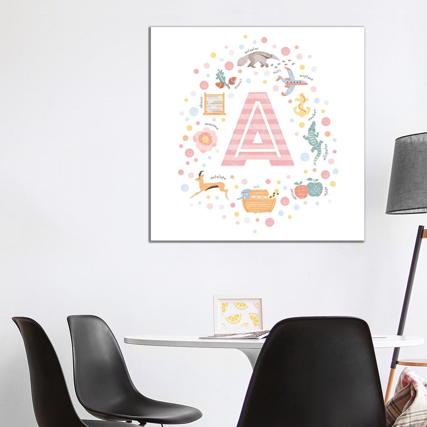 iCanvas "Illustrated Letter A Pink" by PaperPaintPixels Canvas Print