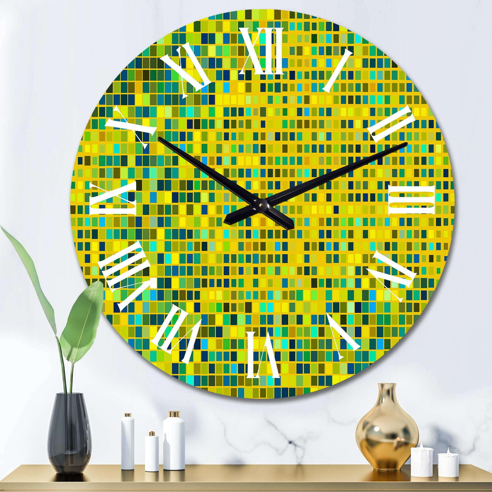 Designart 'Light Blue Yellow Pixel Cubes' Patterned wall clock