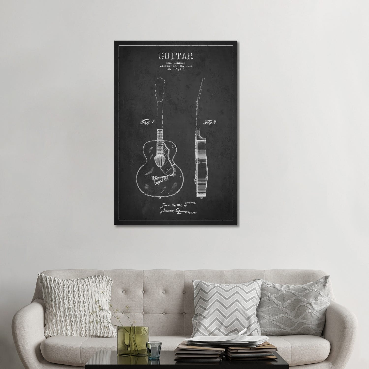 iCanvas "Guitar Charcoal Patent Blueprint" by Aged Pixel Canvas Print