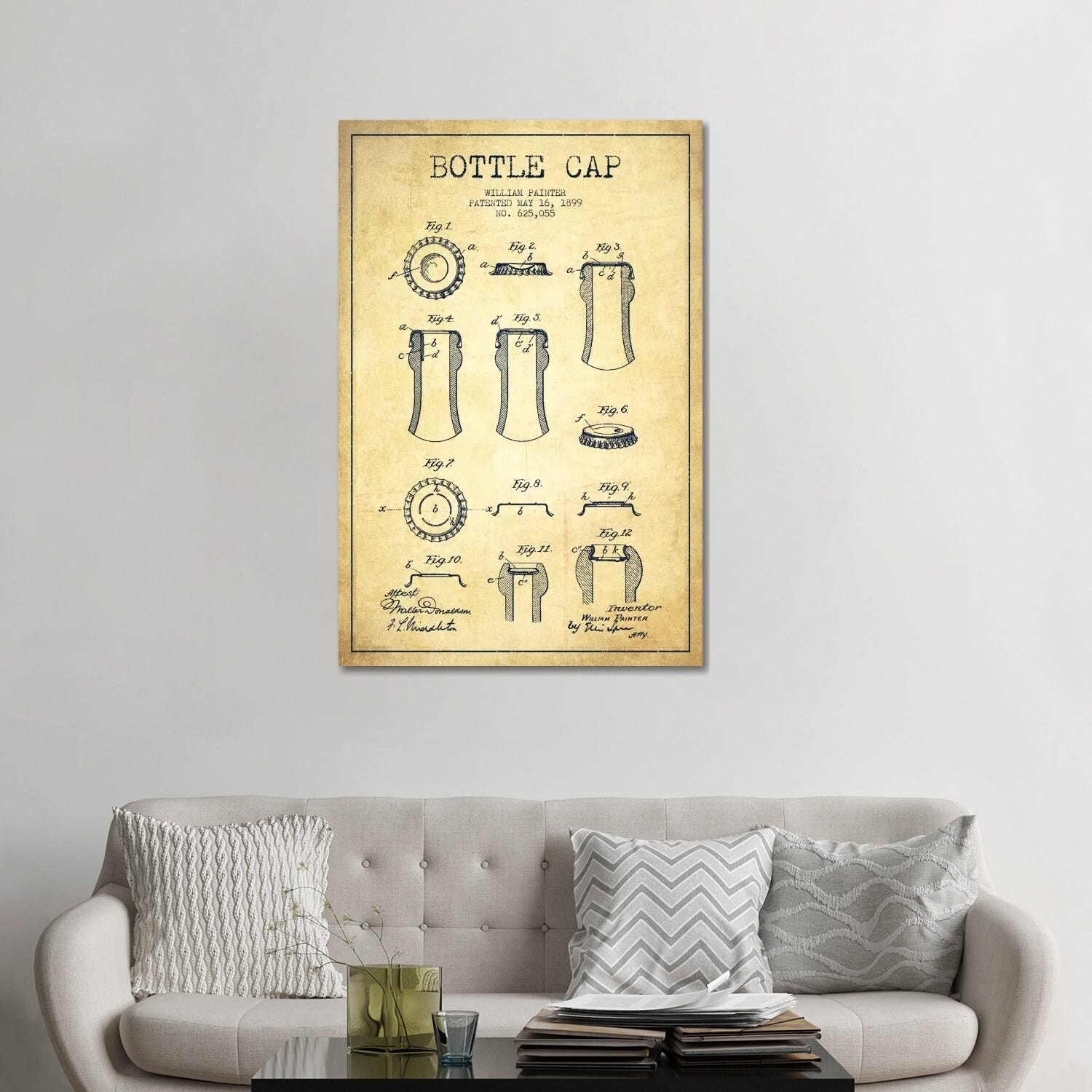 iCanvas "Bottle Cap Vintage Patent Blueprint" by Aged Pixel Canvas Print