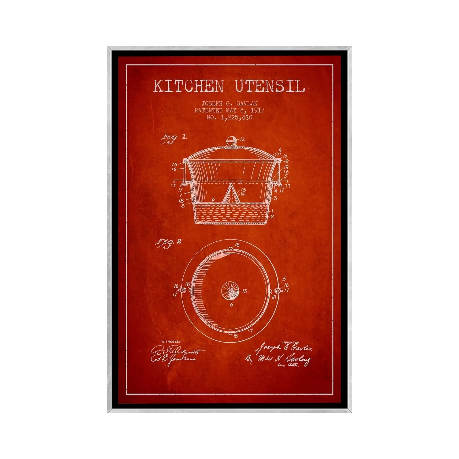 iCanvas "Kitchen Utensil Red Patent Blueprint" by Aged Pixel Framed