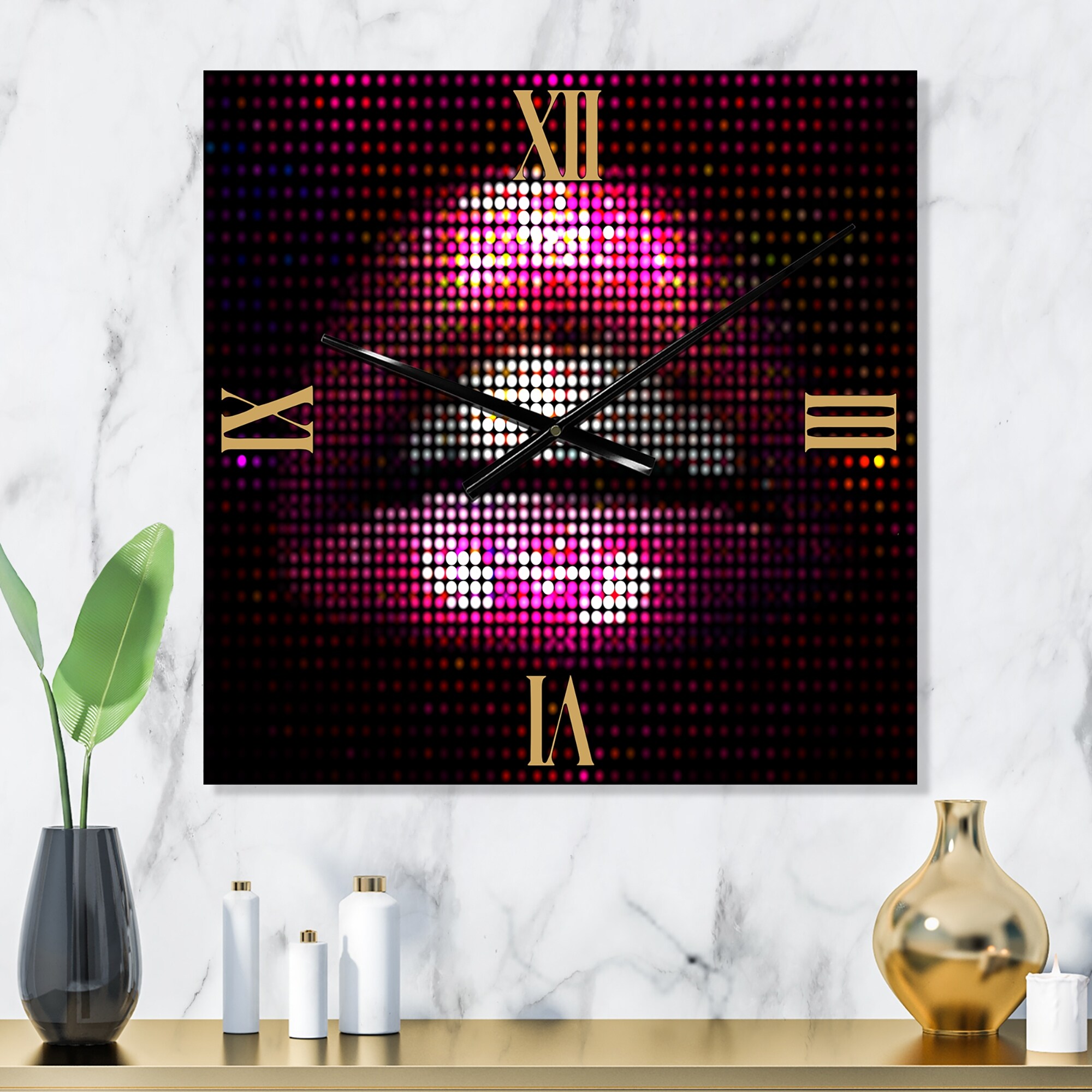 Designart 'Detail Of Pixellated Pink Lips' Modern wall clock