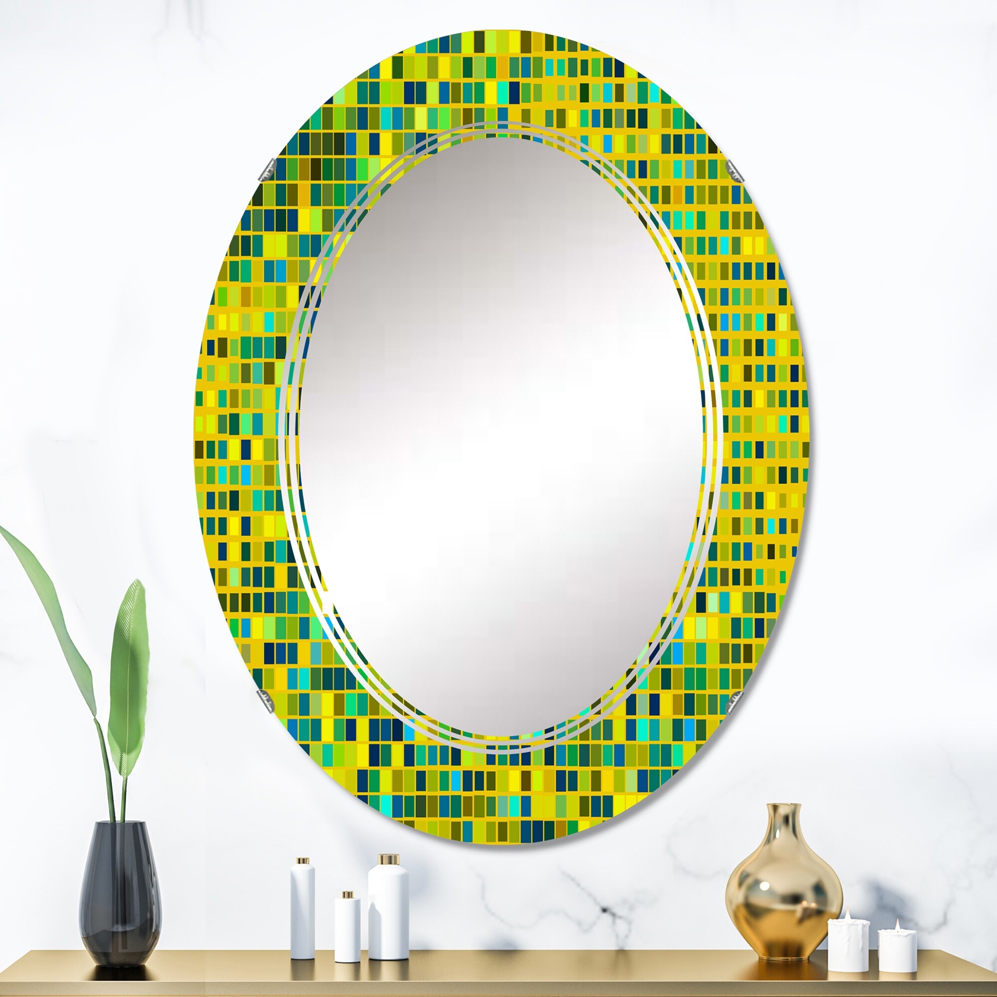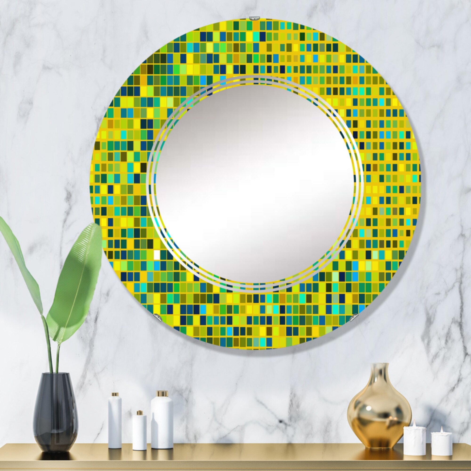 Designart 'Light Blue Yellow Pixel Cubes' Printed Patterned Wall Mirror