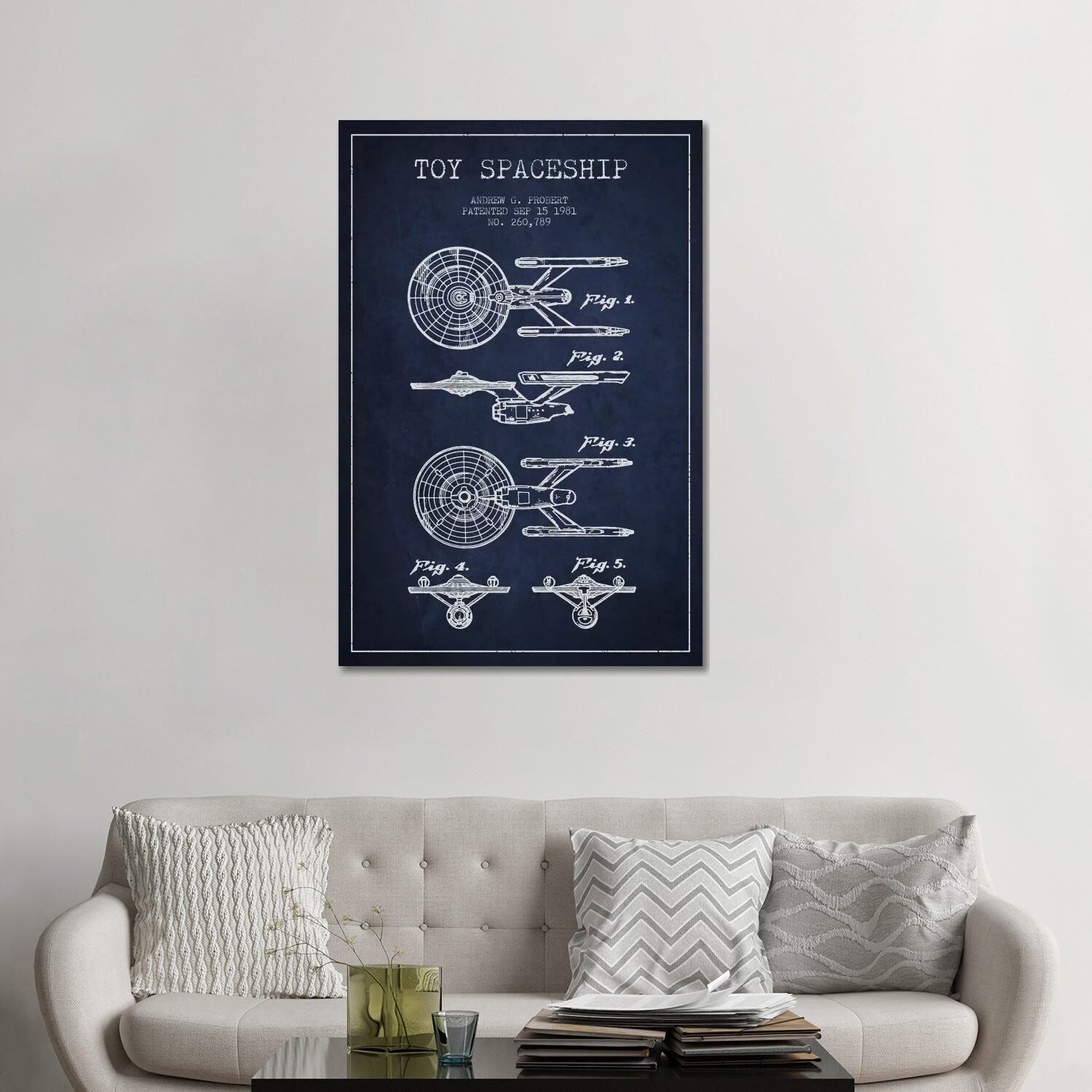 iCanvas "Toy Spaceship Navy Blue Patent Blueprint" by Aged Pixel Canvas Print