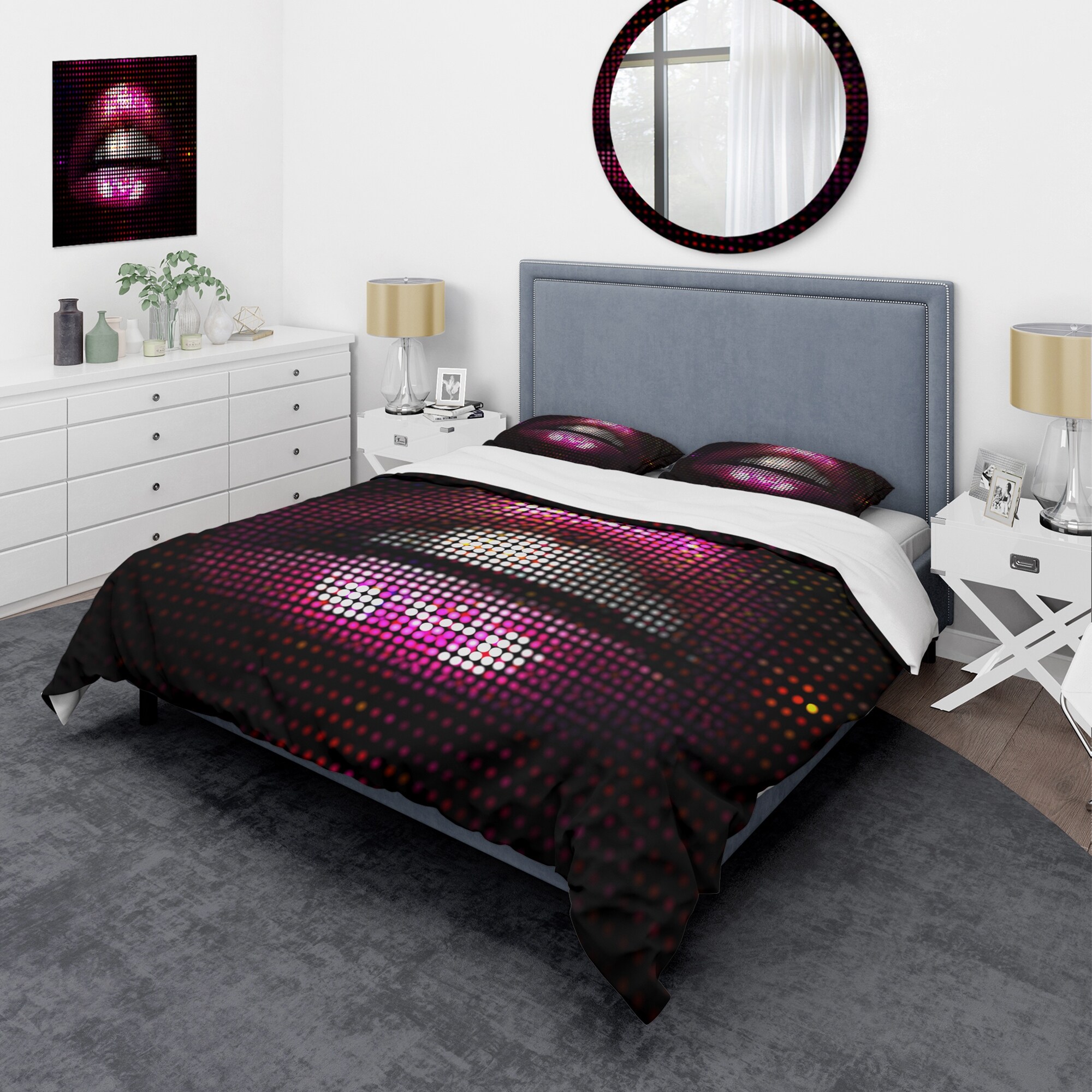 Designart 'Detail Of Pixellated Pink Lips' Modern Duvet Cover Comforter Set