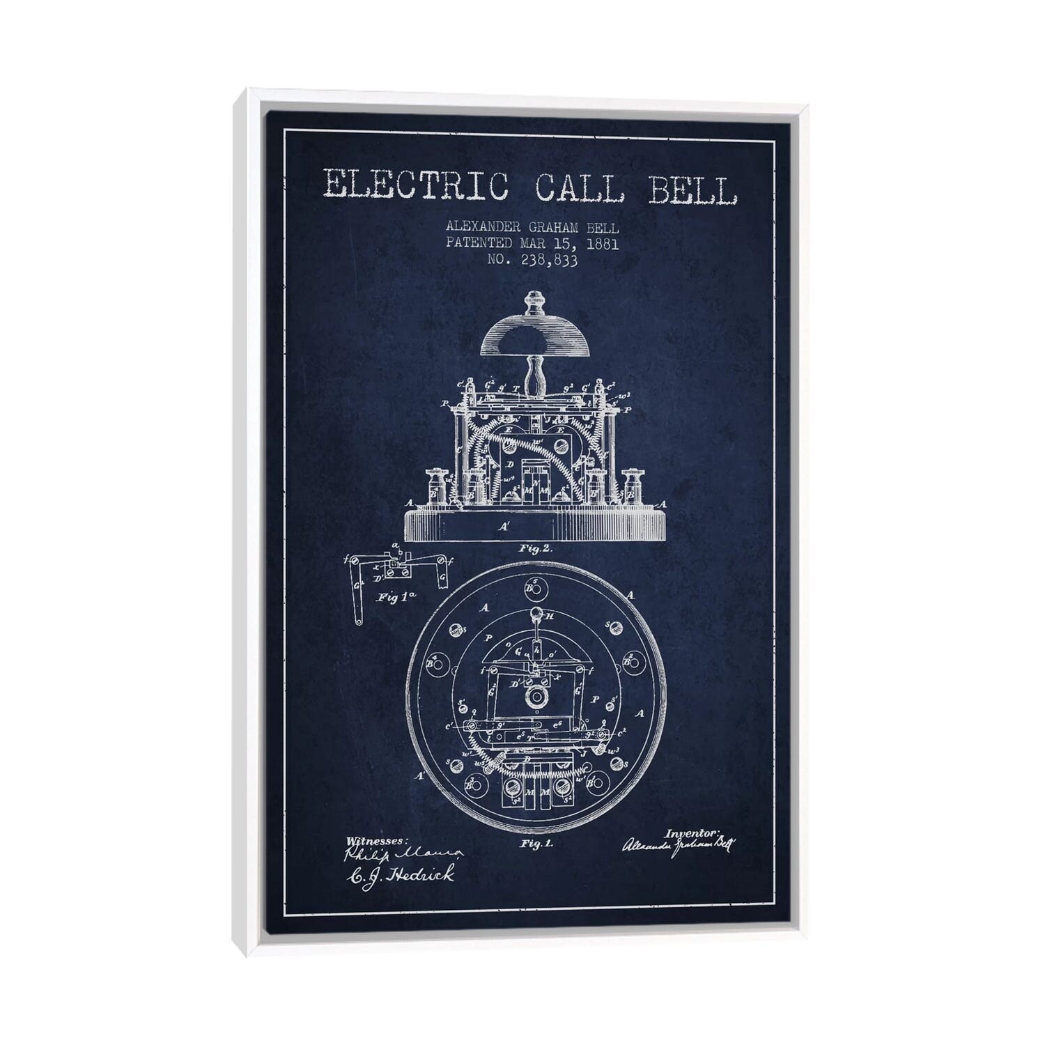 iCanvas "Electric Bell Navy Blue Patent Blueprint" by Aged Pixel Framed Canvas Print