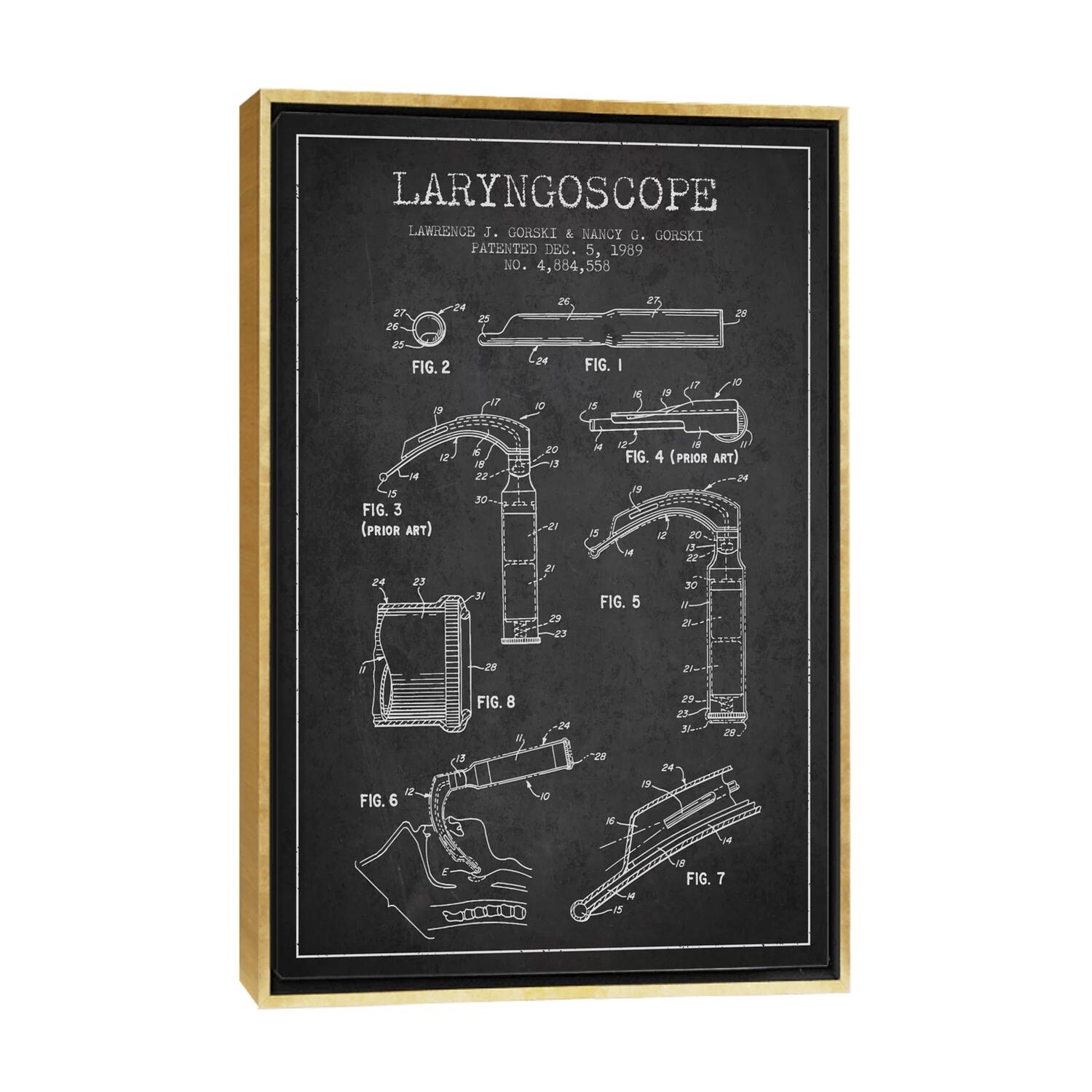 iCanvas "Laryngoscope Charcoal Patent Blueprint" by Aged Pixel Framed