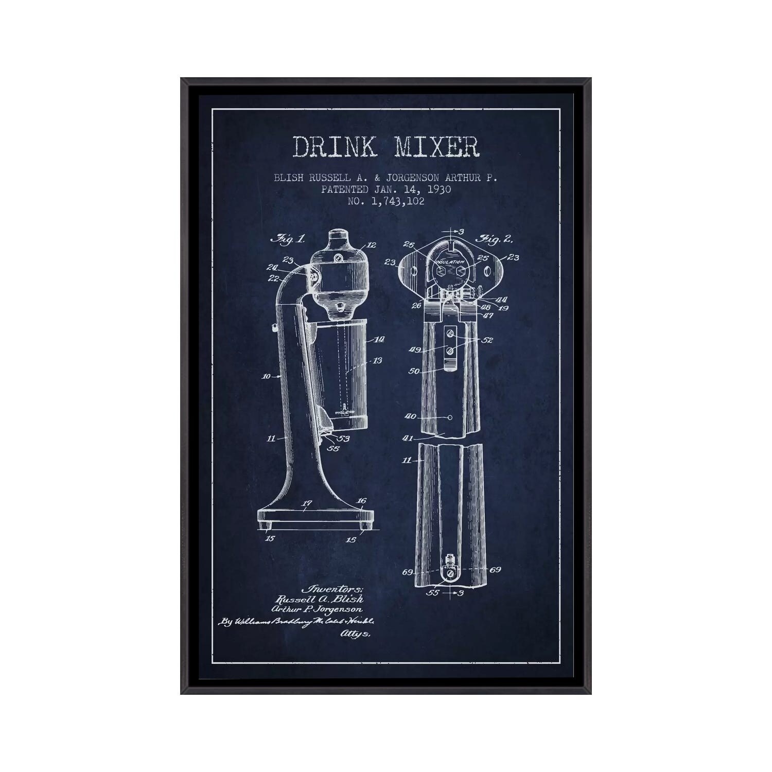 iCanvas "Drink Mixer Navy Blue Patent Blueprint" by Aged Pixel Framed