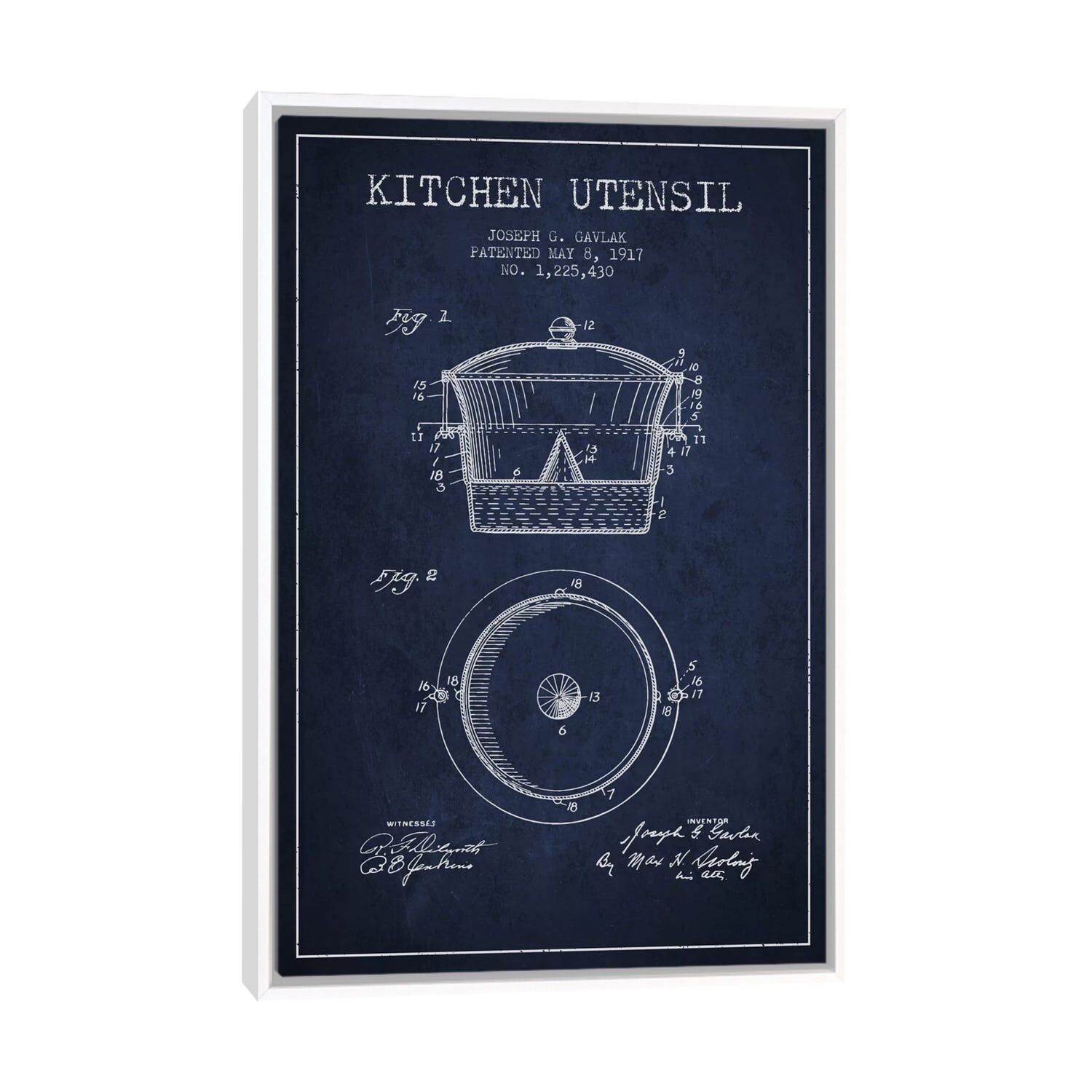 iCanvas "Kitchen Utensil Navy Blue Patent Blueprint" by Aged Pixel Framed Canvas Print