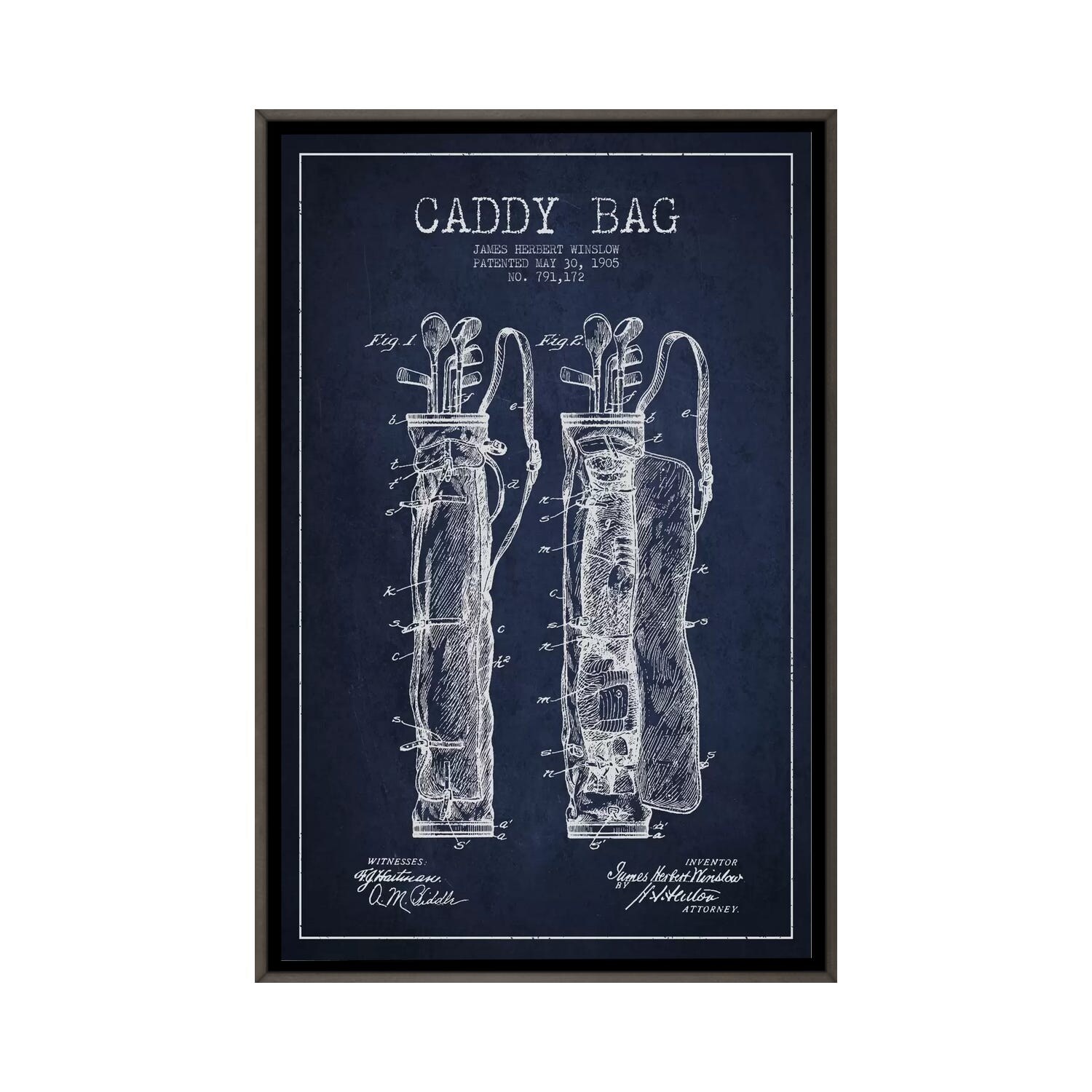 iCanvas "Caddy Bag Navy Blue Patent Blueprint" by Aged Pixel Framed