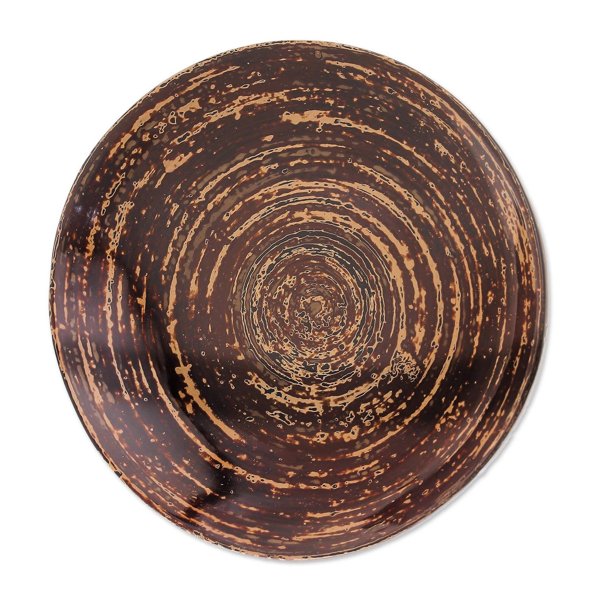 Novica Handmade Earth Whirl Lacquered Bamboo Decorative Plate