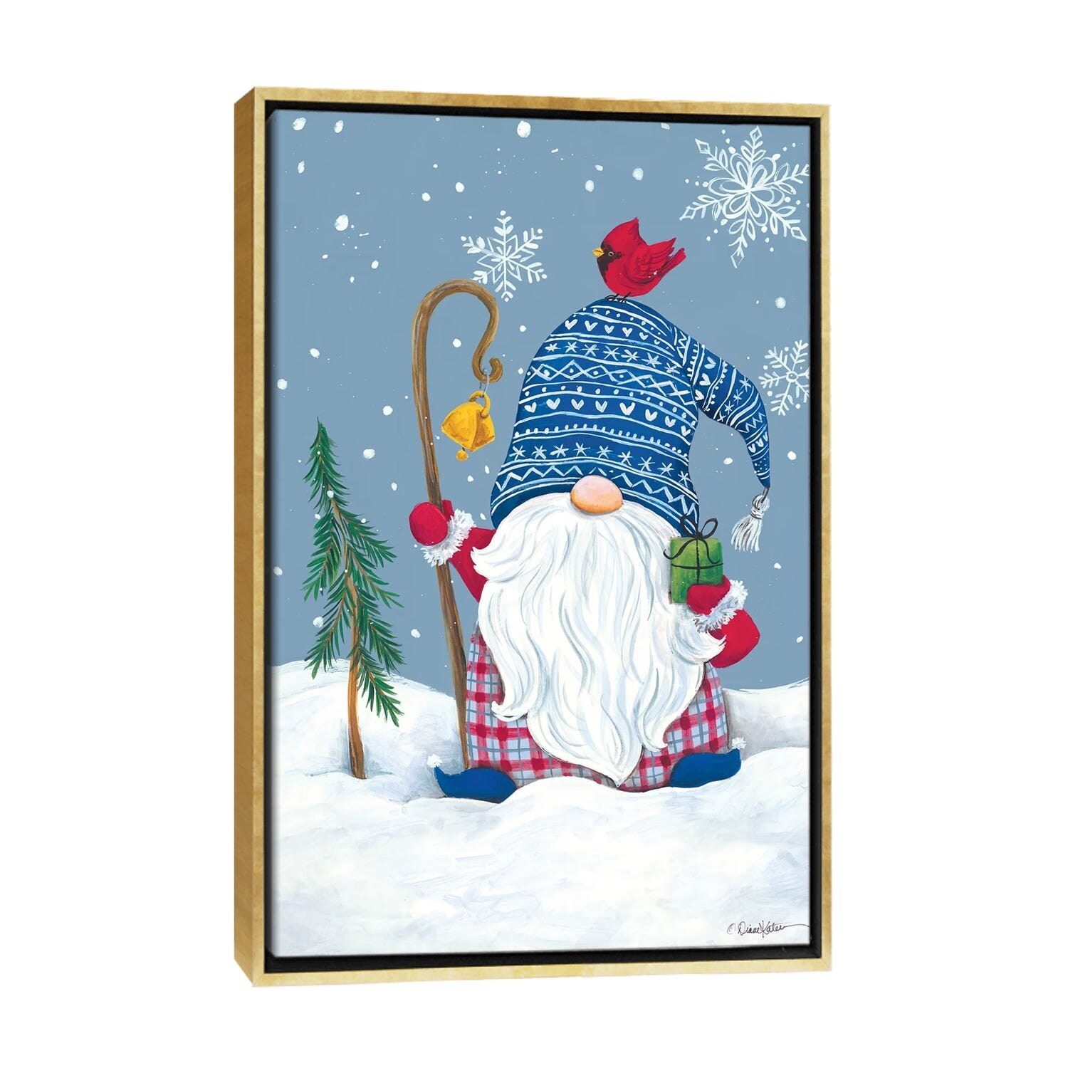 iCanvas "Snowy Gnome with Present" by Diane Kater Framed