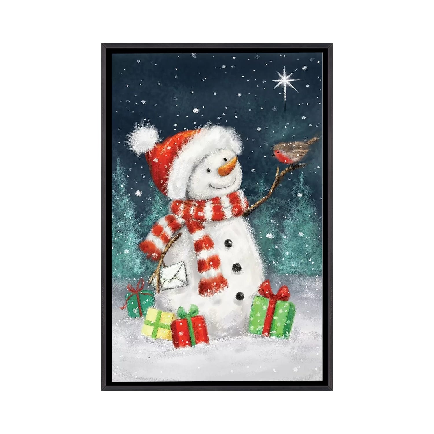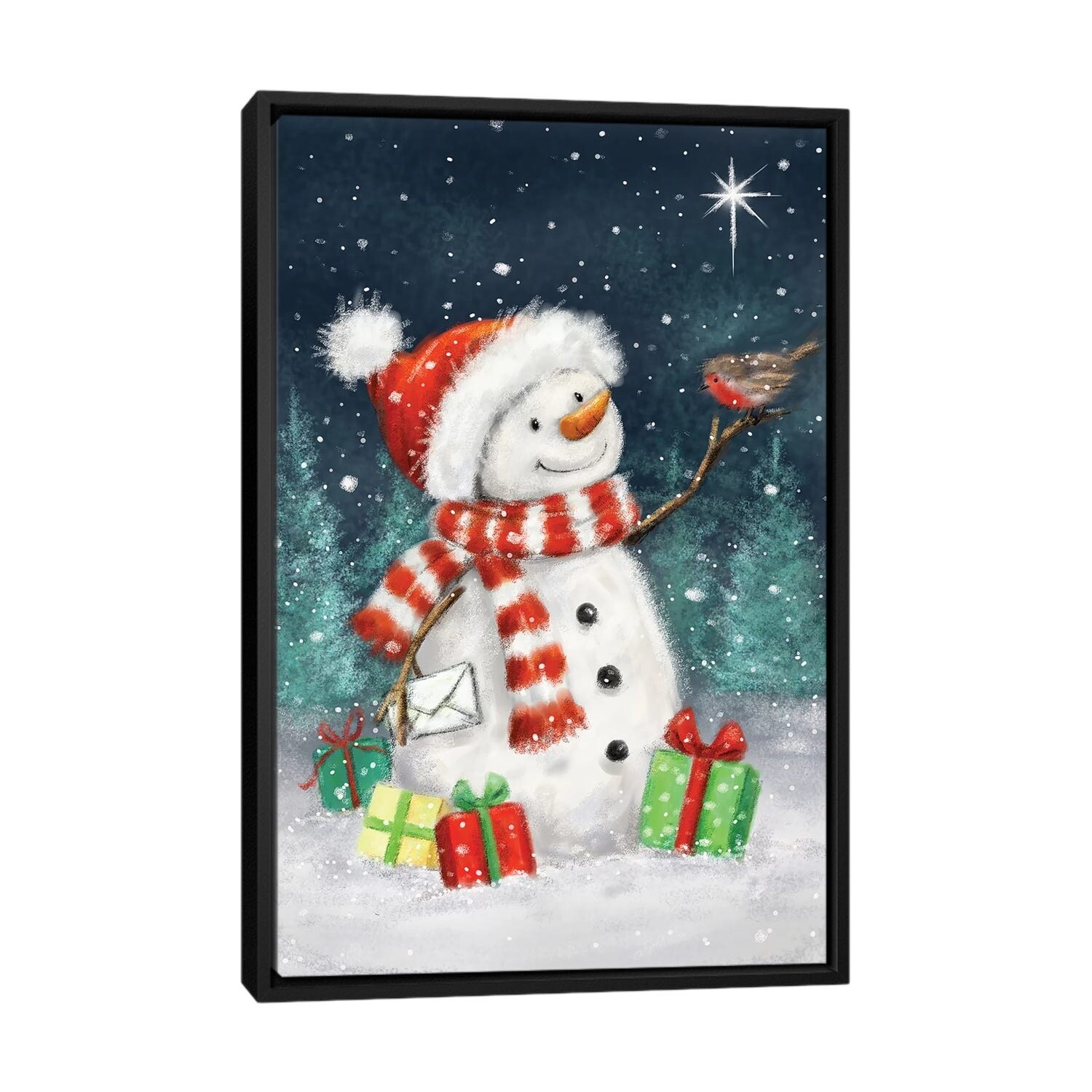iCanvas "Snowman with Presents III B" by MAKIKO Framed Canvas Print