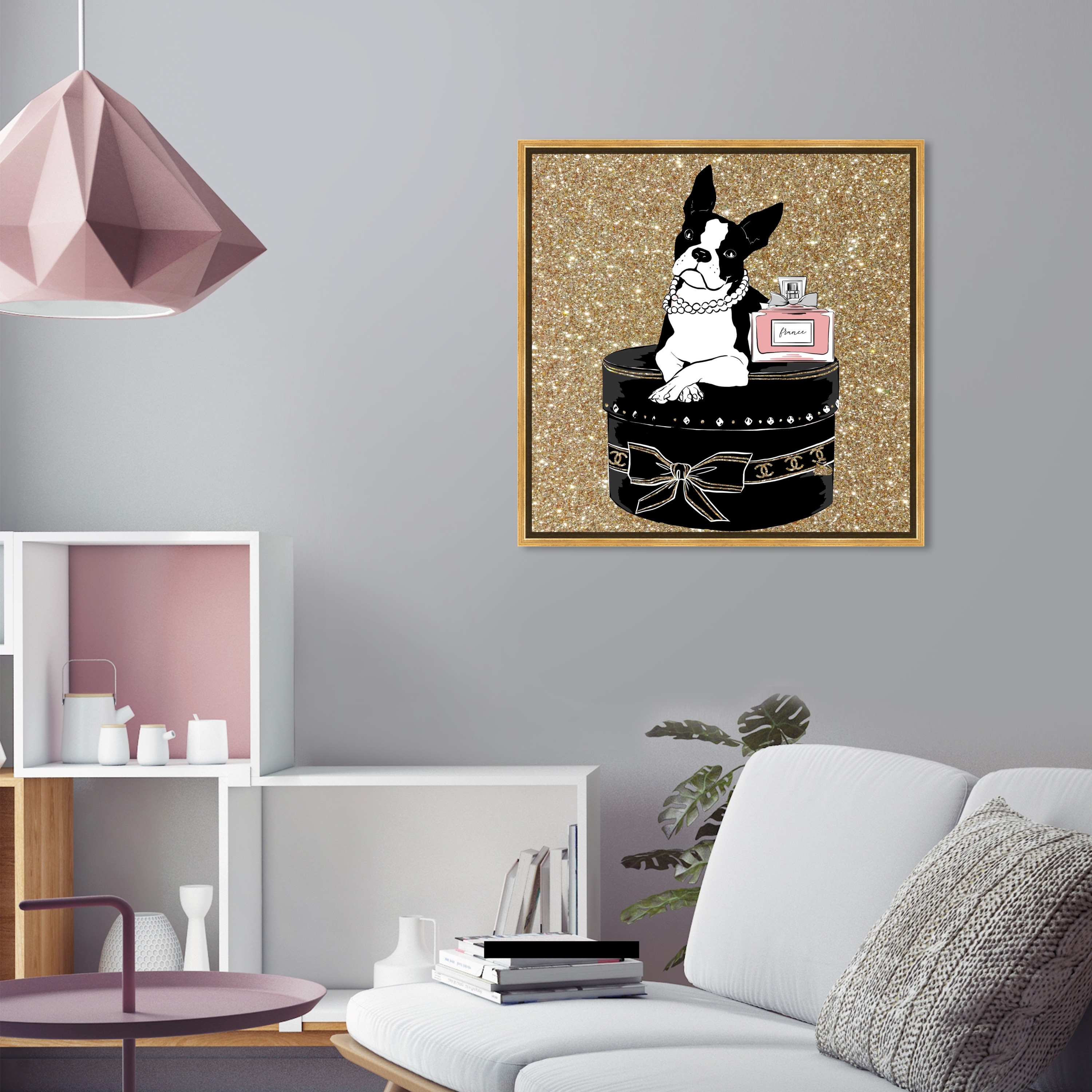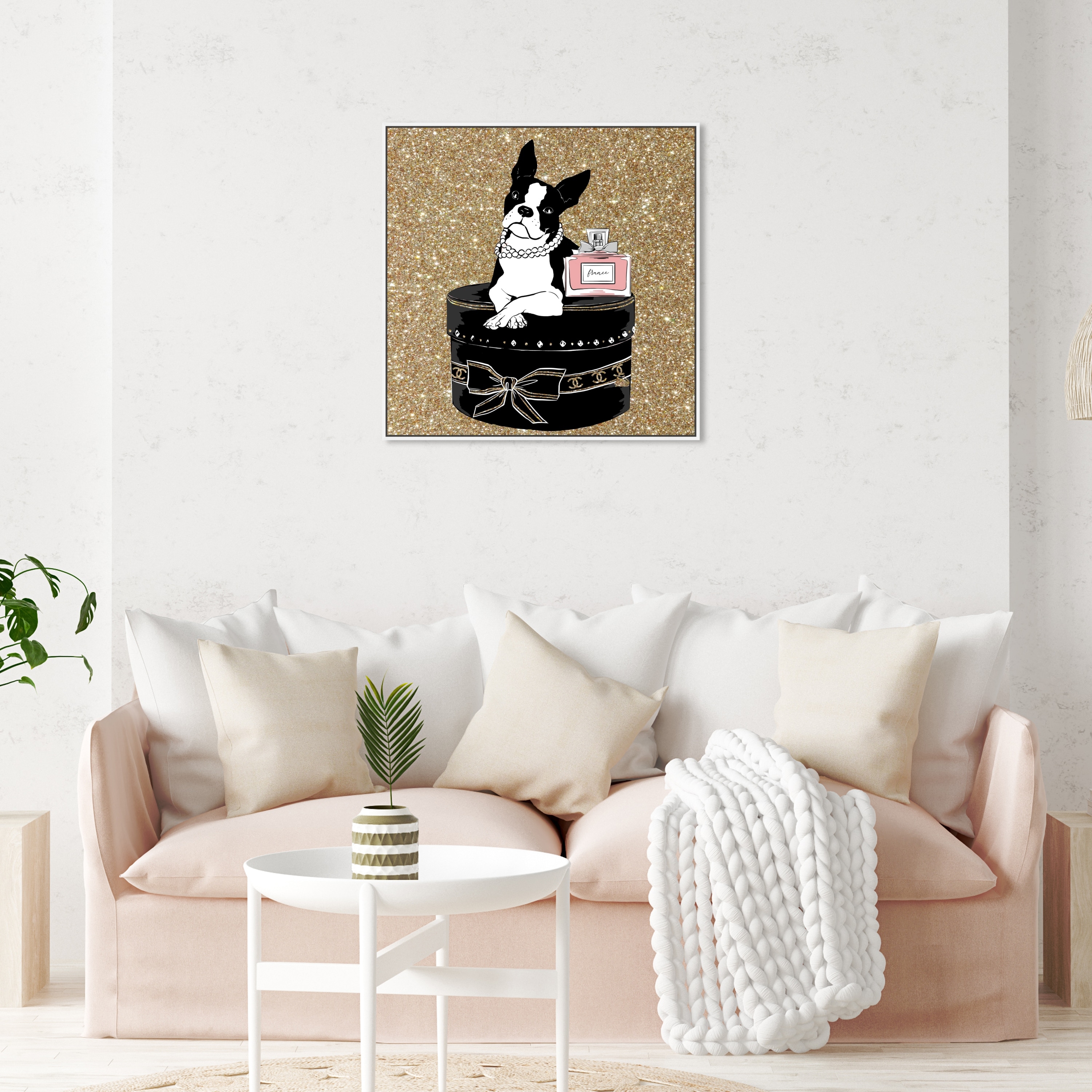 Oliver Gal 'Fashion Frenchie Present' Black Wall Art Canvas Print