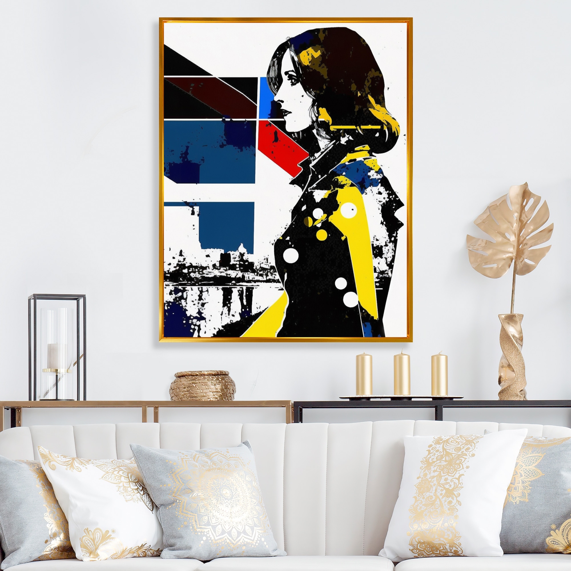 Designart "Street Art Profile in Yellow Blue And Red" Modern Woman Framed Canvas Prints