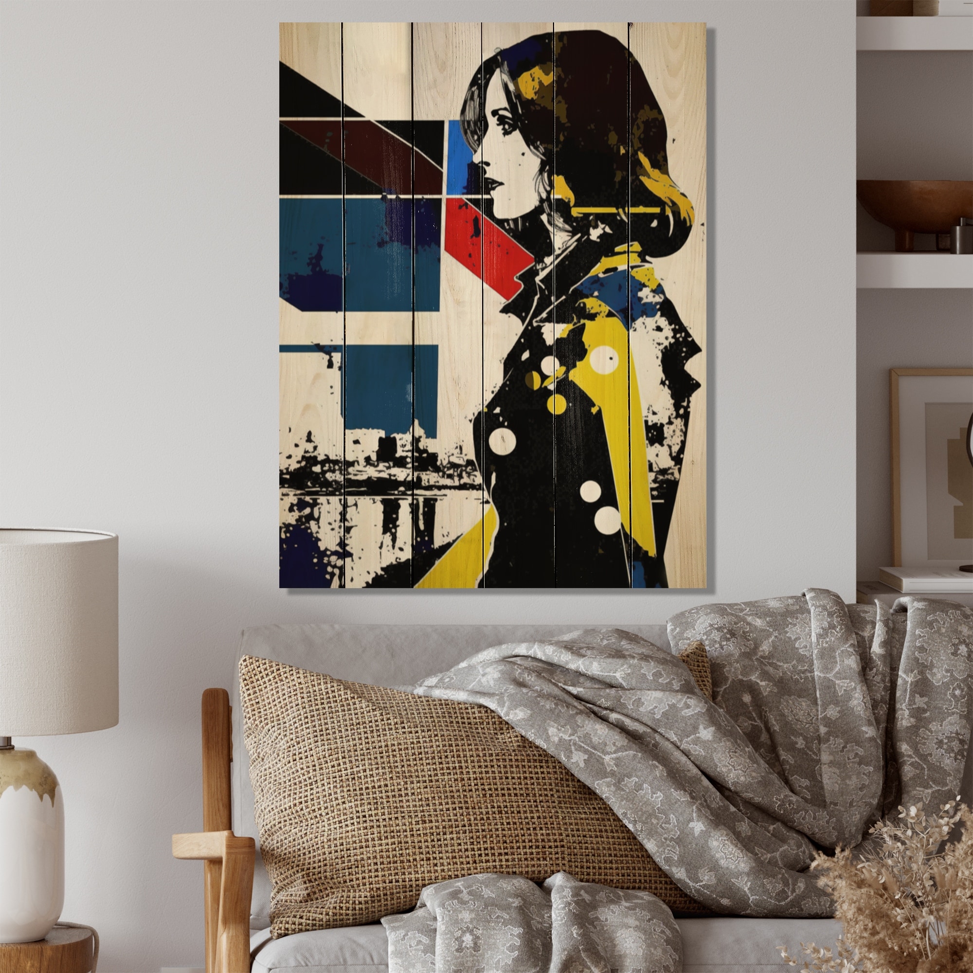 Designart "Street Art Profile in Yellow Blue And Red" Modern Woman Print on Natural Pine Wood
