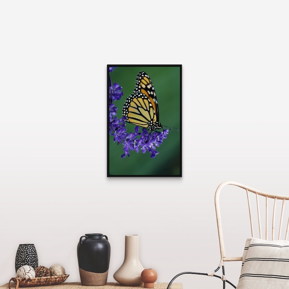 "Monarch butterfly on flower blossom, profile, Michigan" Black Float Frame Canvas Art