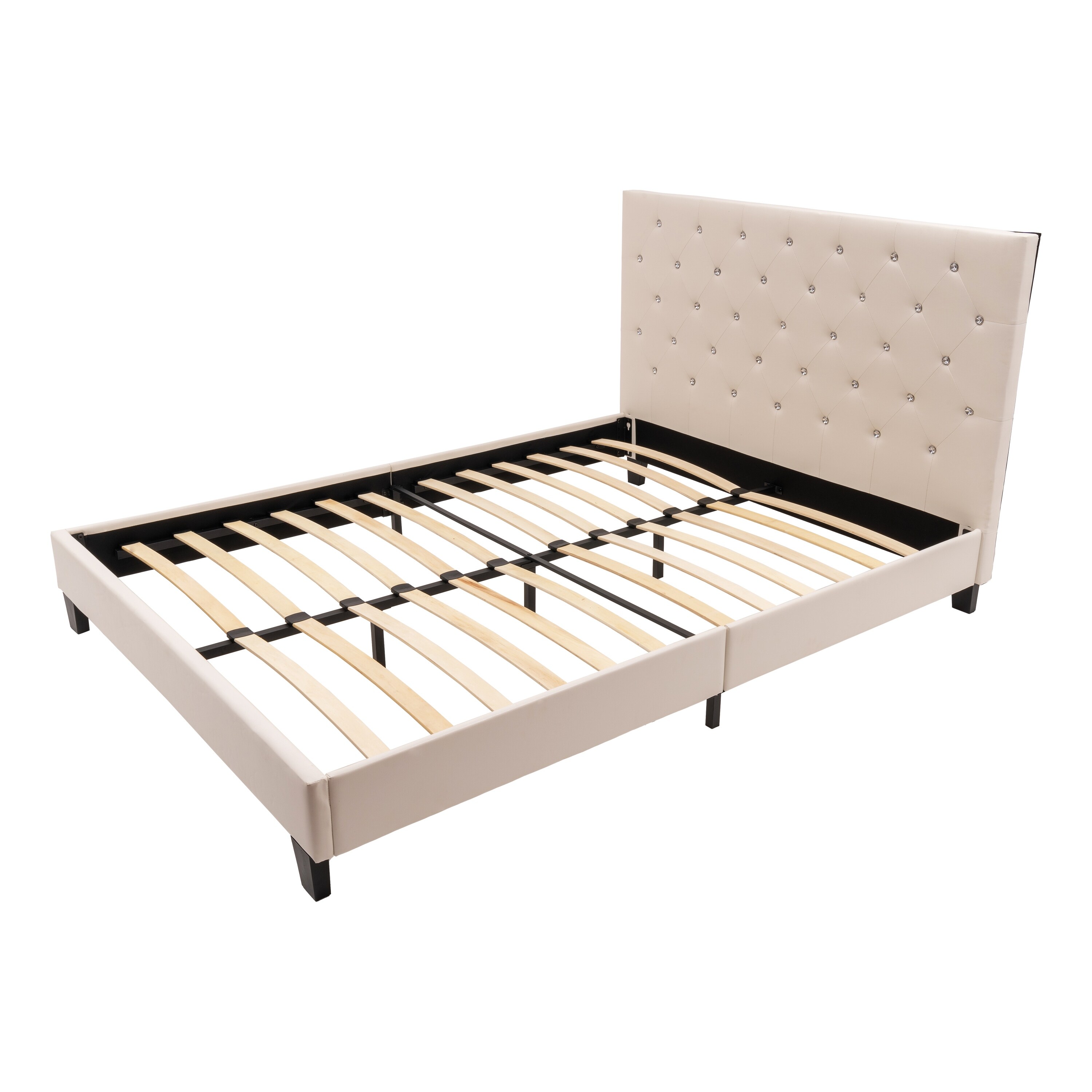 Queen Size Upholstered Platform Bed with Tufted Headboard,Beige