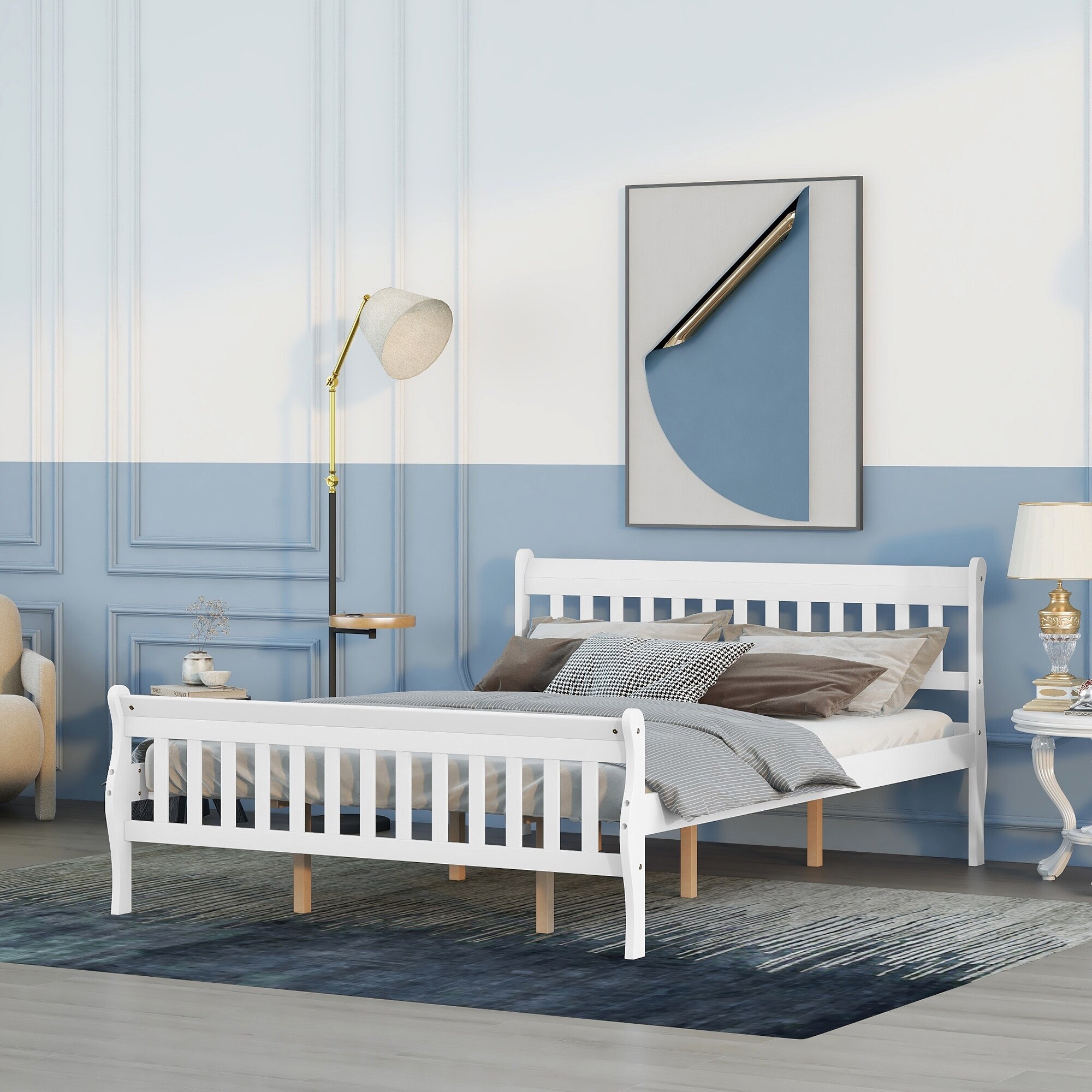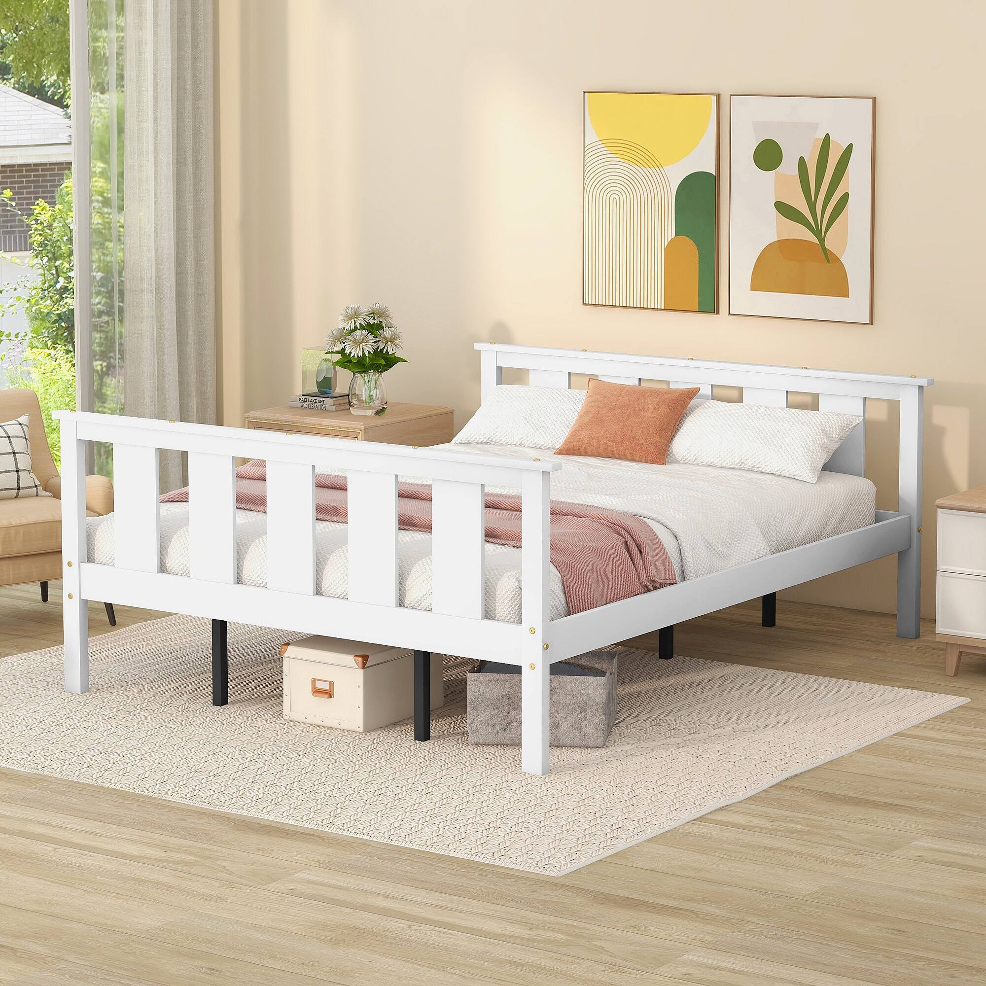 Vertical Slats Style Queen Size Wood Platform Bed with Headboard and Footboard, White