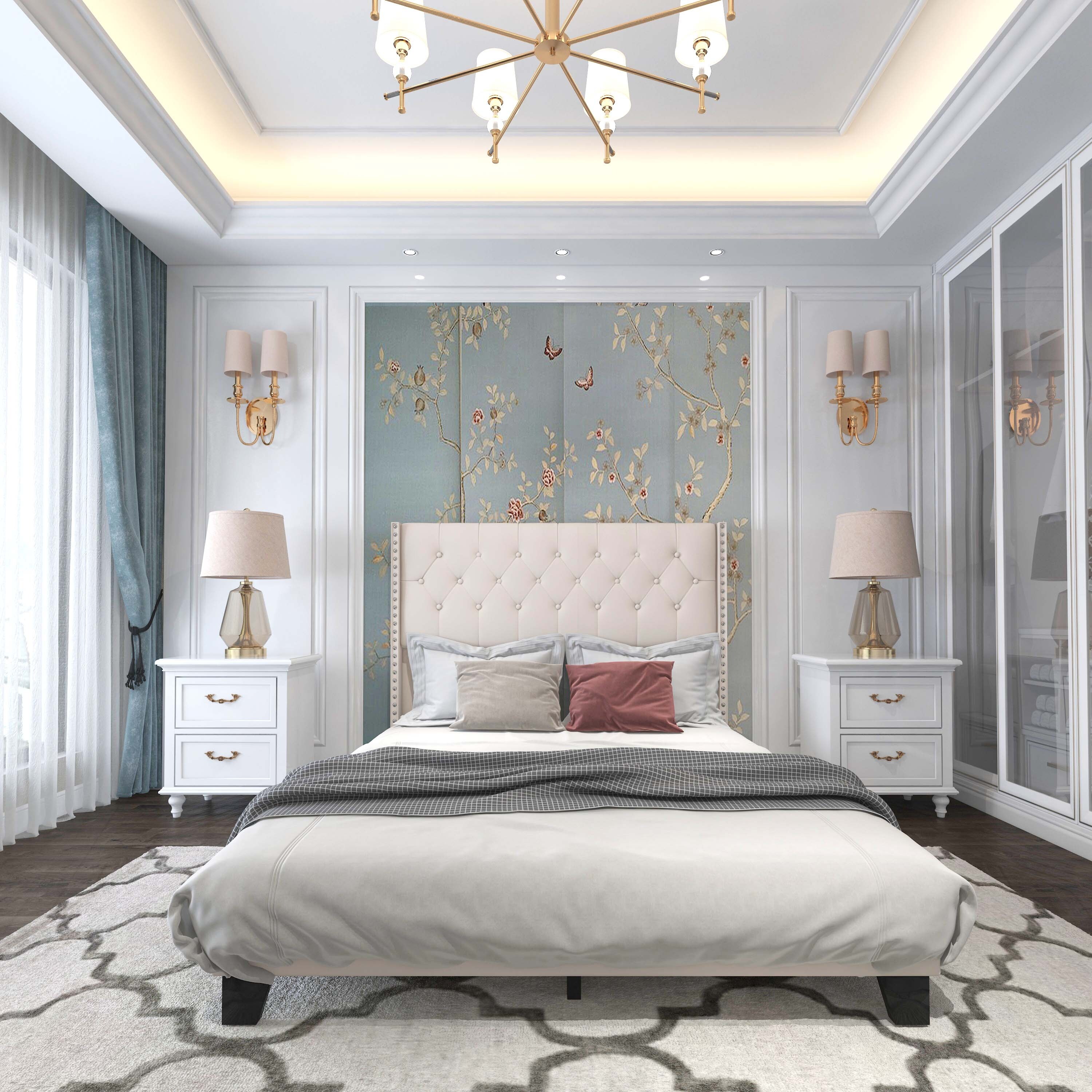 Queen Size Upholstered Platform Bed with Classic Headboard