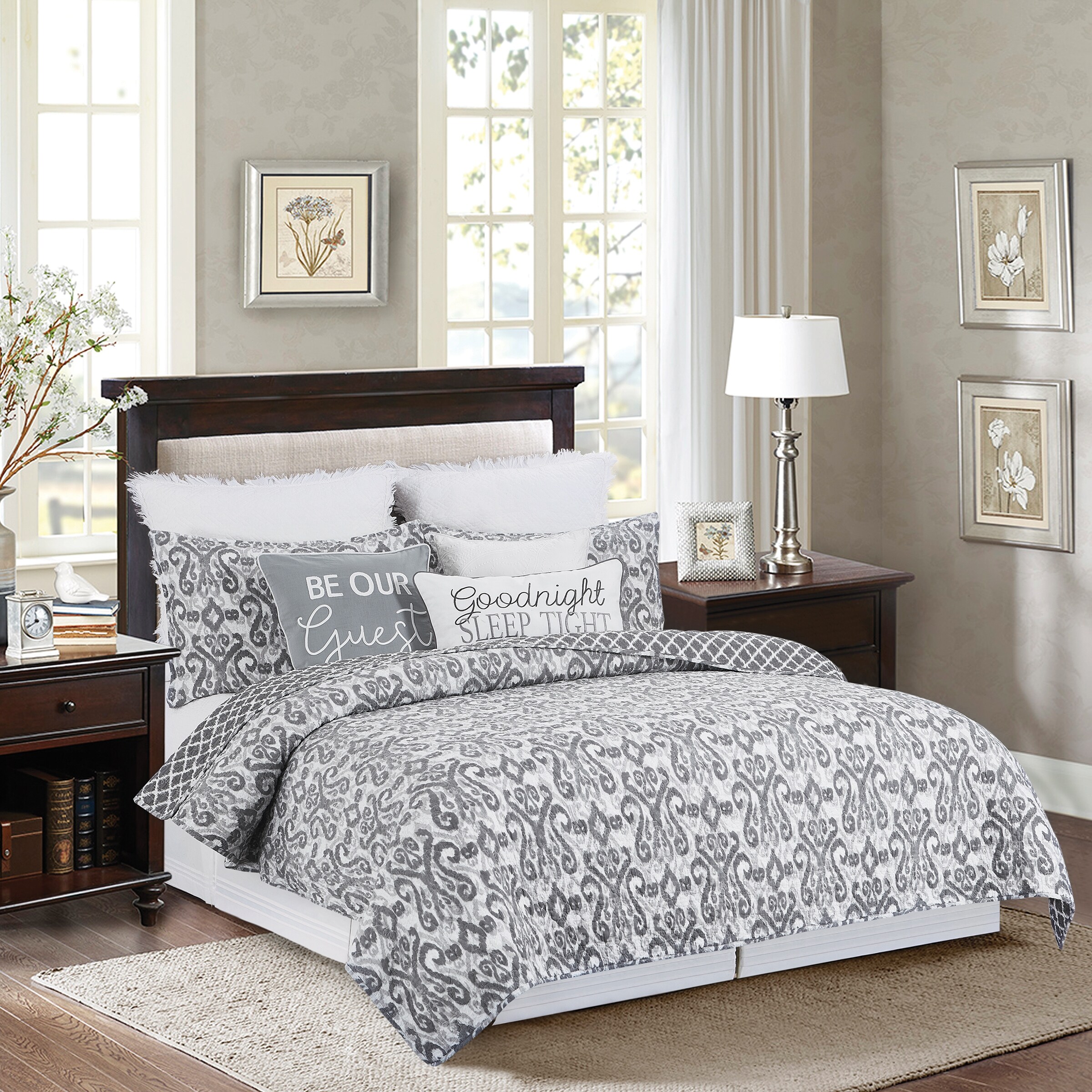 Carolene Cottage Grey Reversible Cotton Quilt Set