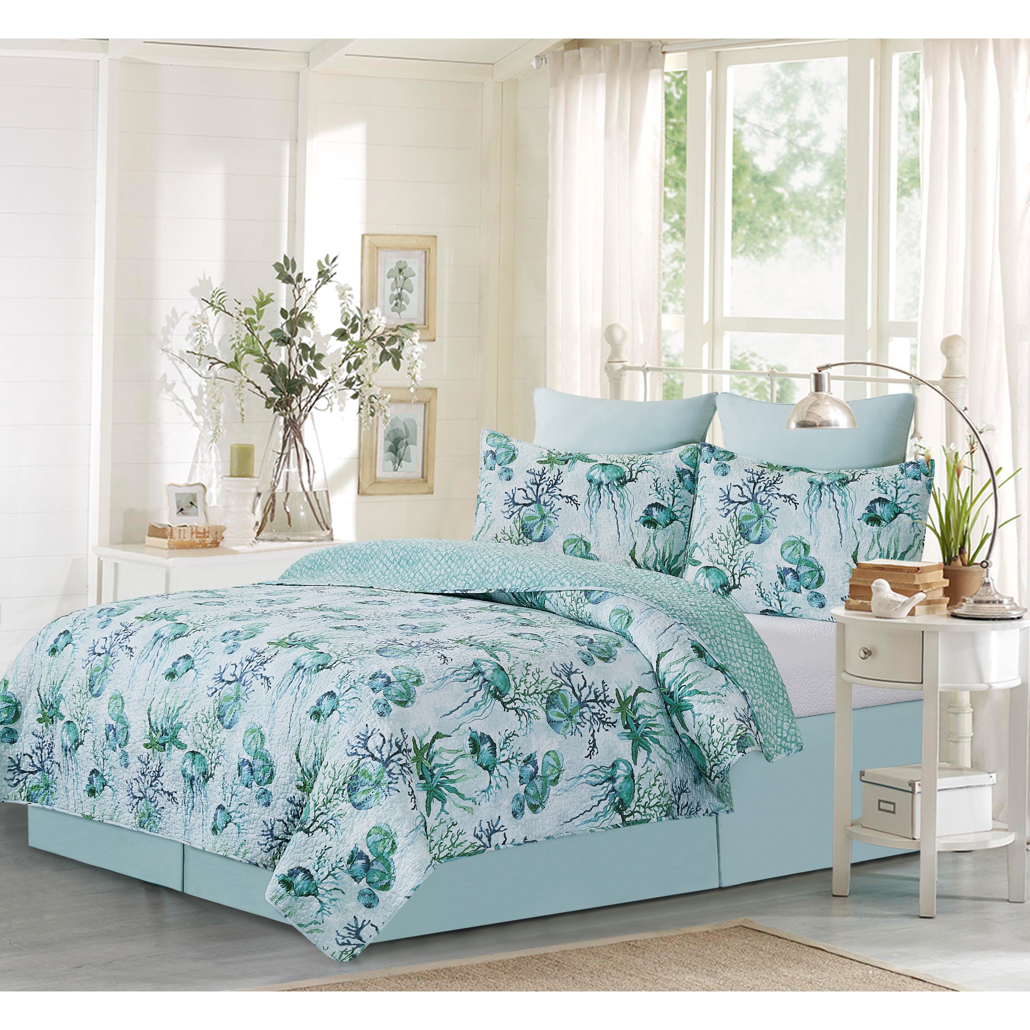 Crescent Bay Reversible Coastal Full/Queen Quilt Set