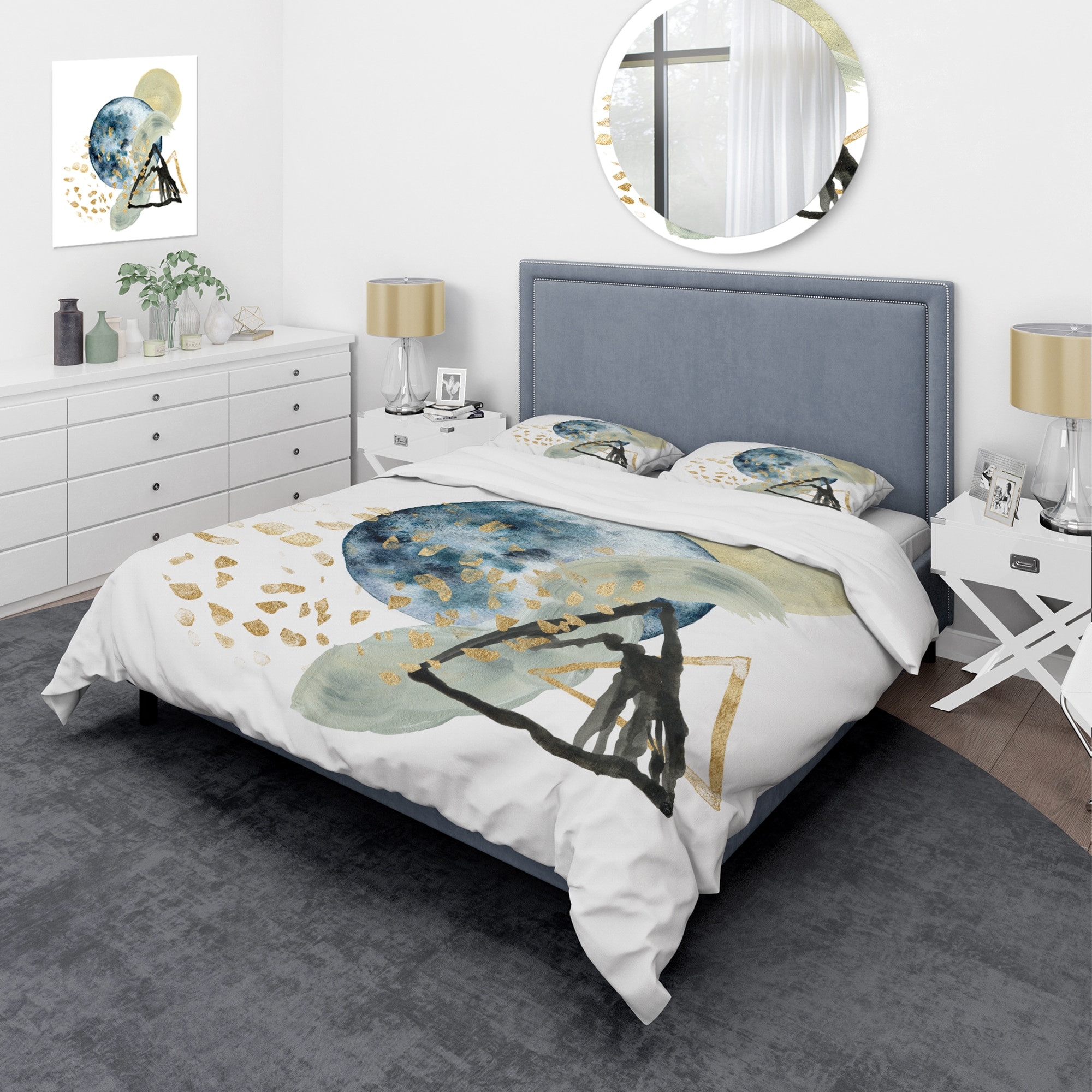 Designart 'Geometry Intersecting Circles WIth Golden Stars' Modern Duvet Cover Comforter Set
