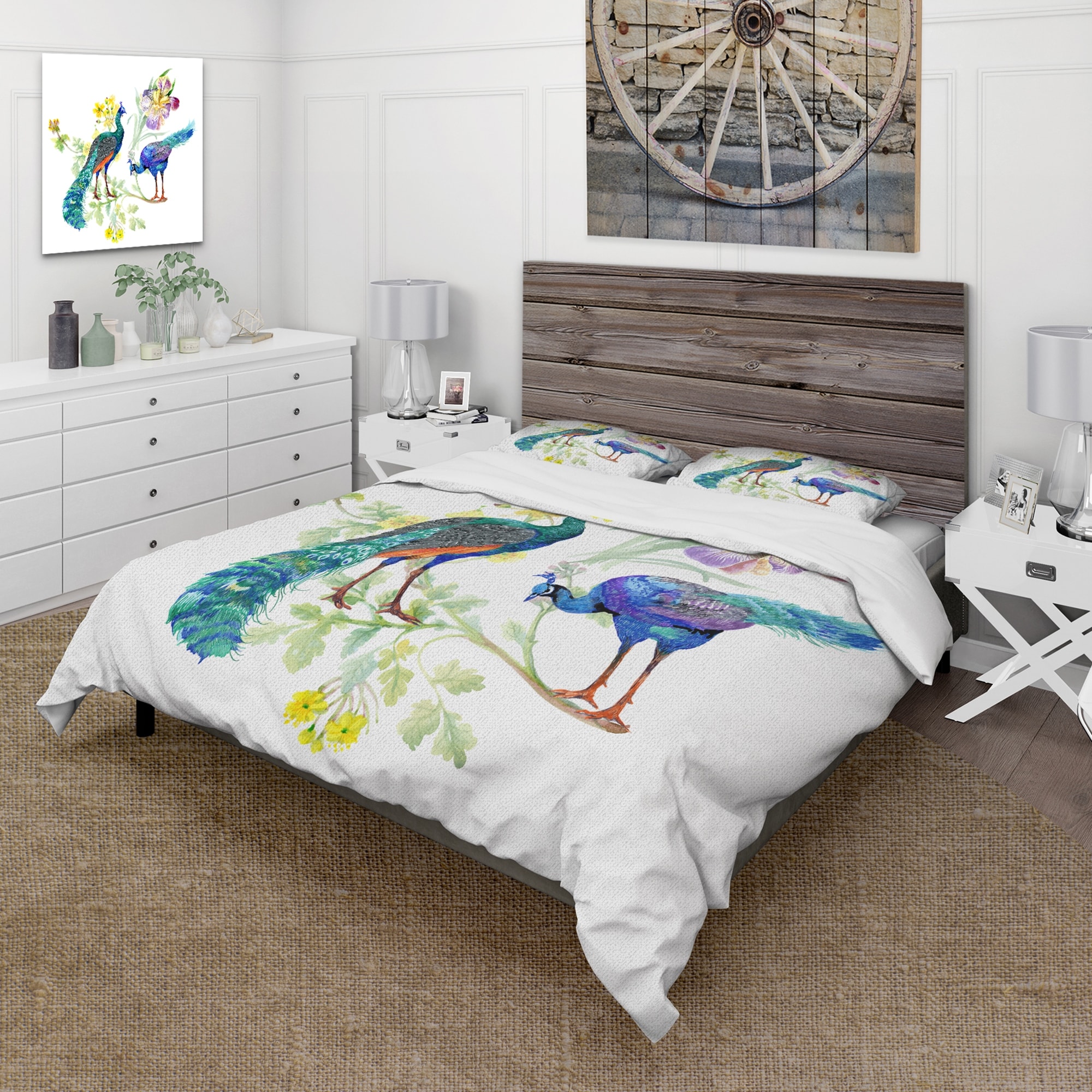 Designart 'Peacocks and Iris Flowers' Traditional Duvet Cover Comforter Set