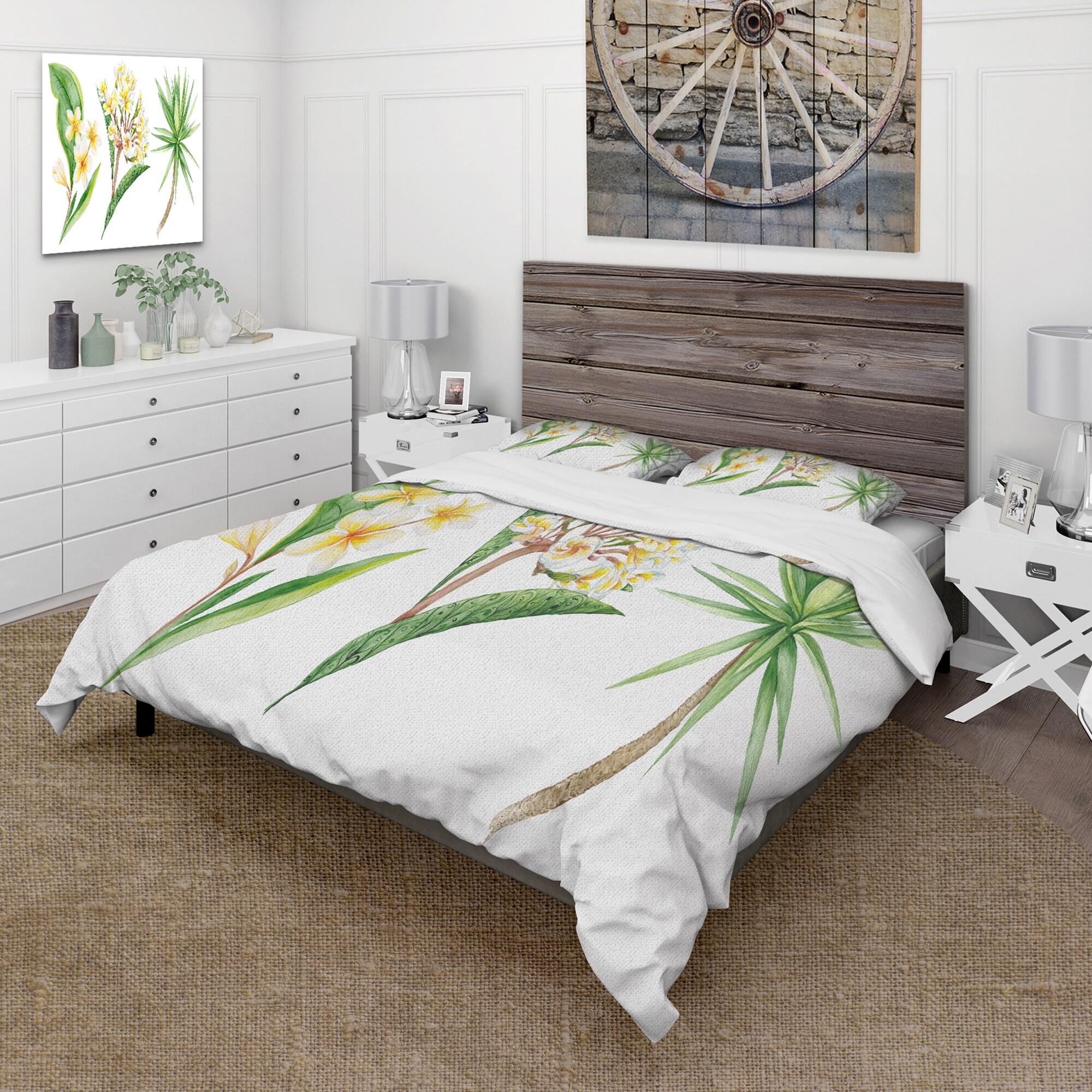 Designart 'Tropical Foliage and Yellow Flowers XII' Traditional Duvet Cover Comforter Set