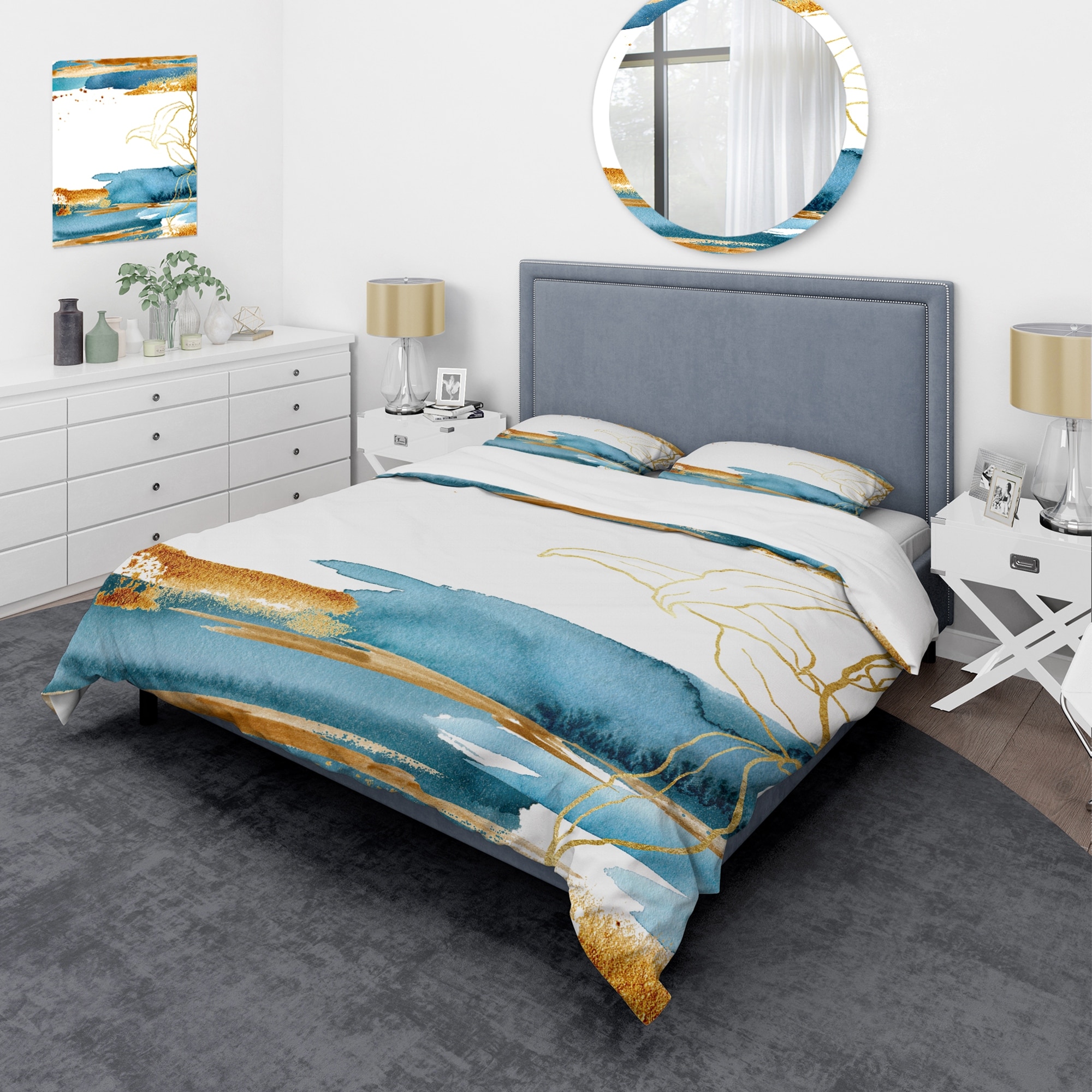 Designart 'Abstract Pattern With Dark Blue & Golden Textures' Modern Duvet Cover Comforter Set