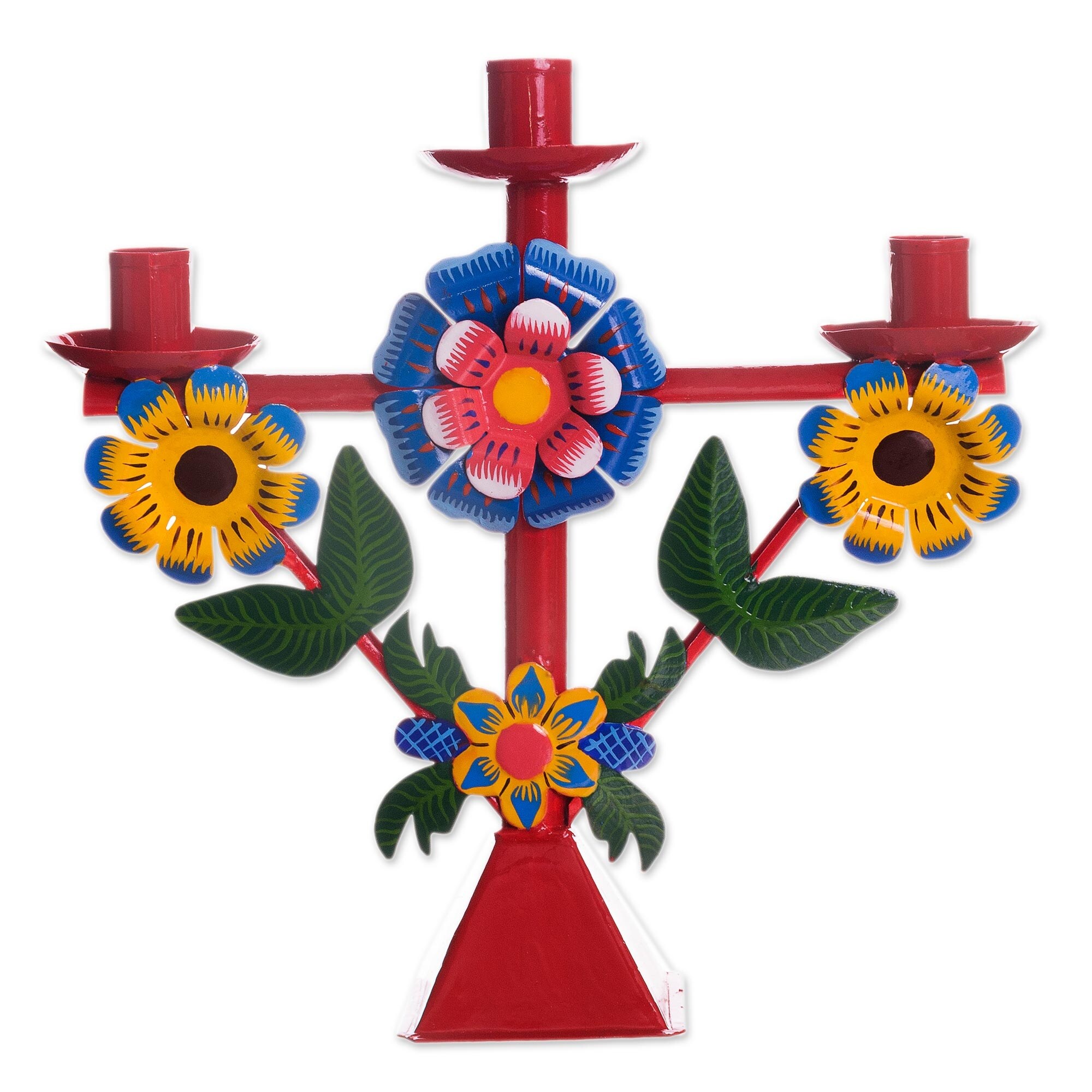 Novica Handmade Margarita Temple in Red Recycled Metal Candelabra