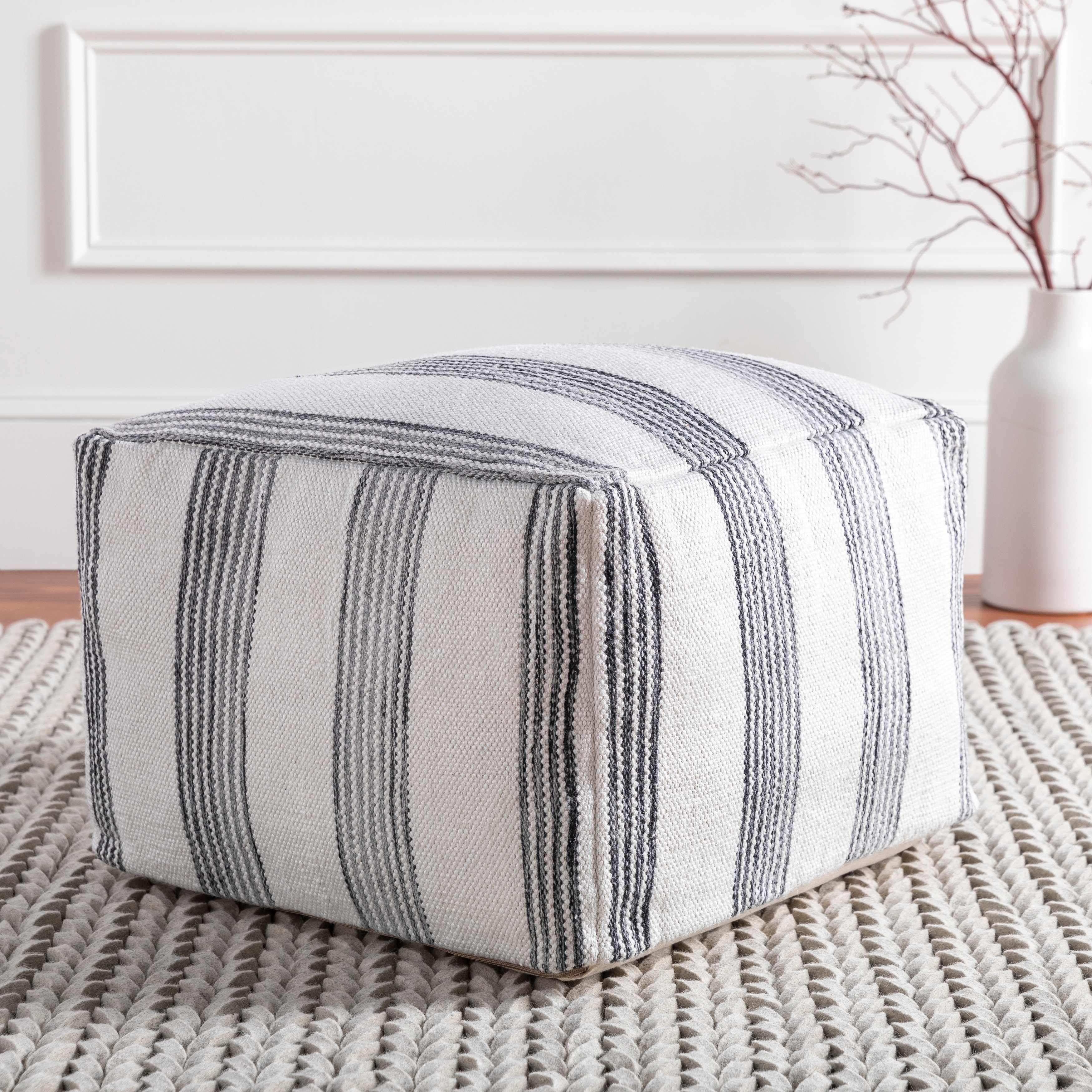 WYNDENHALL Laurene Square Woven Pouf in Grey and White Recycled PET Polyester