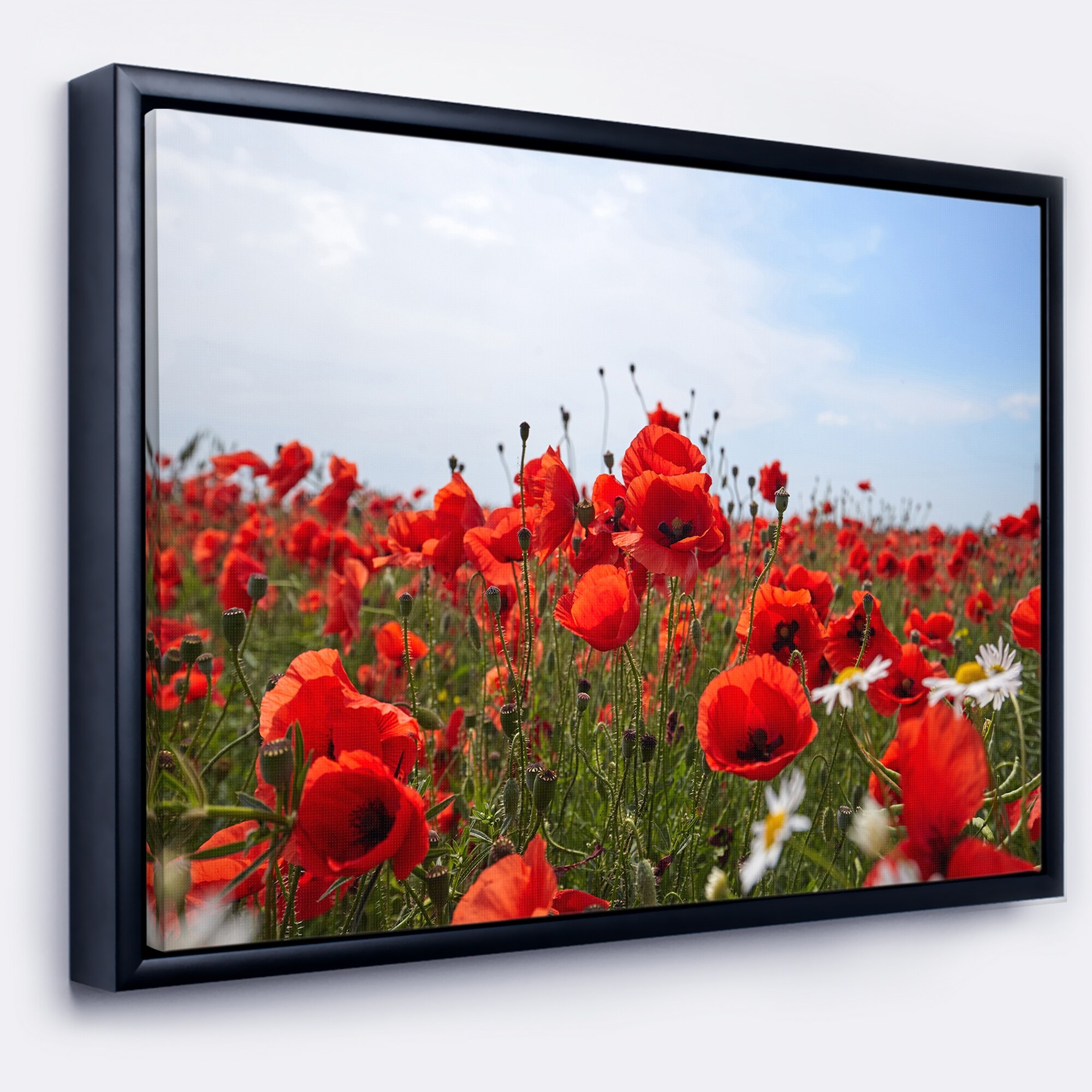 Designart "Red Poppies under Bright Blue Sky" Flower Artwork Print on Framed Canvas
