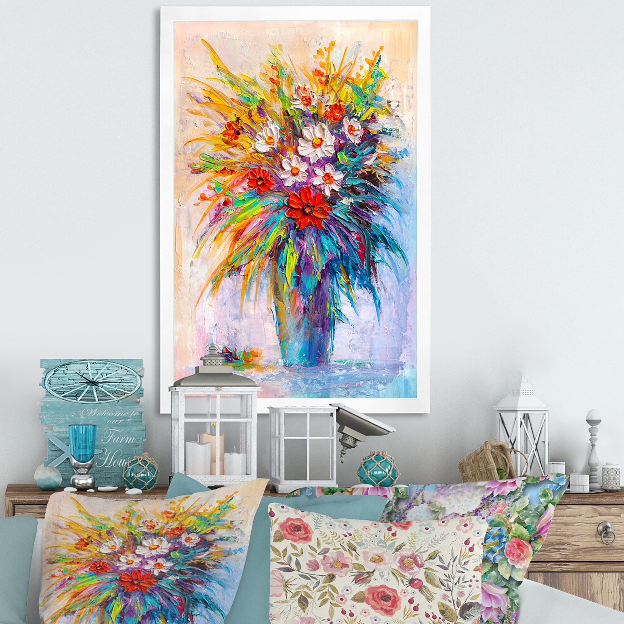 Designart "Red And Yellow Vase of Flowers" Traditional Framed Wall Art