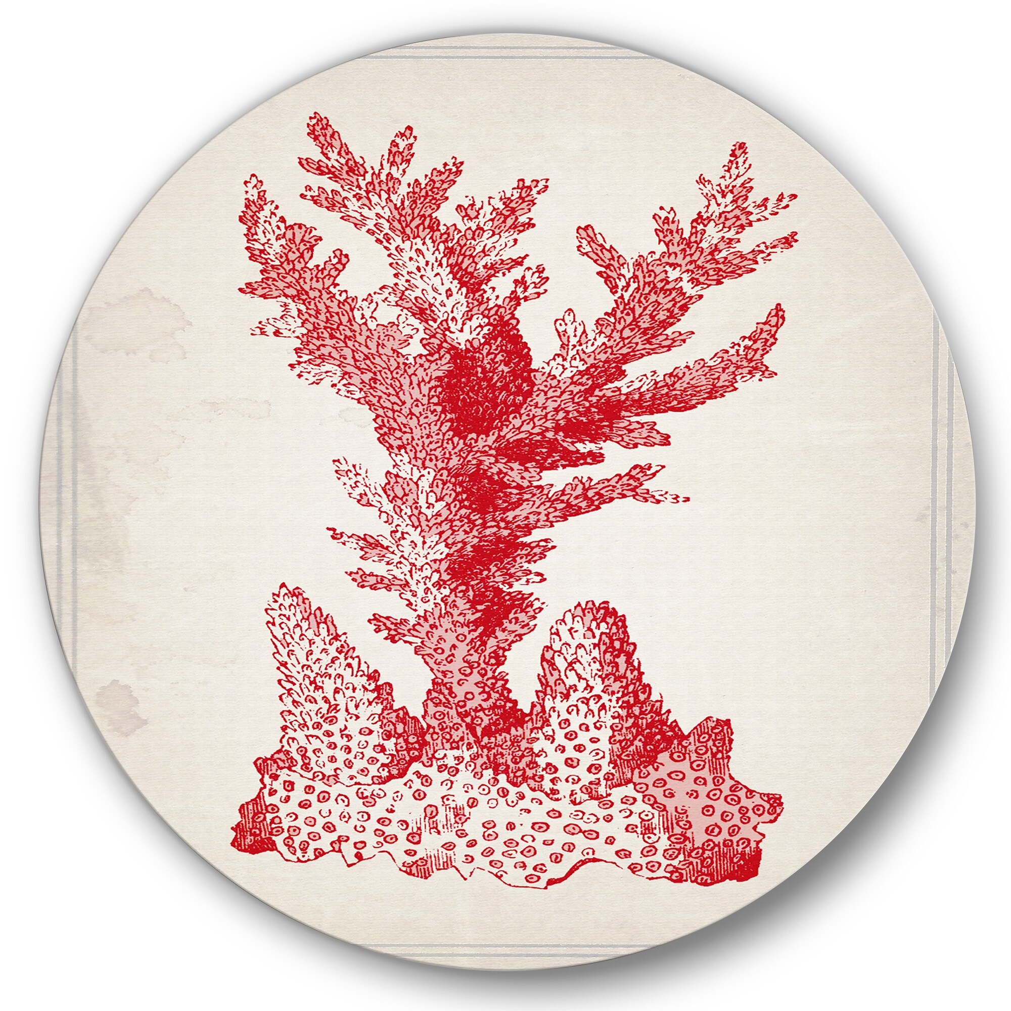 Designart 'Red Coral 1' Nautical & Coastal Metal Circle Wall Art