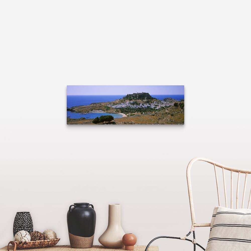 "High angle view of a town, Acropolis, Lindos, Rhodes, Greece" Canvas Wall Art