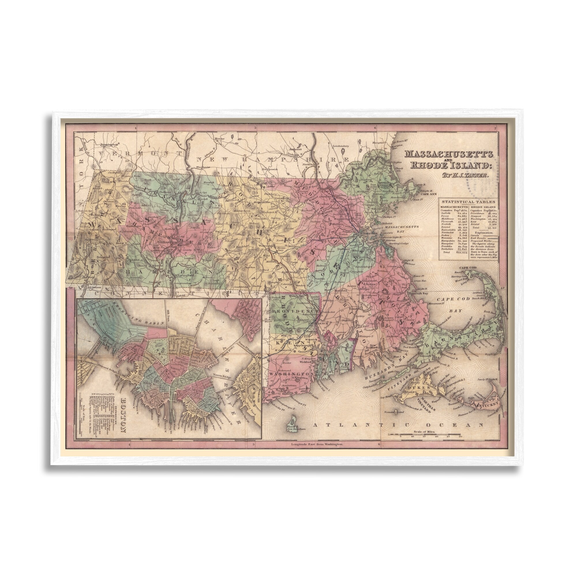Stupell Industries Southern New England Map Massachusetts Rhode Island Cartography Framed Wall Art