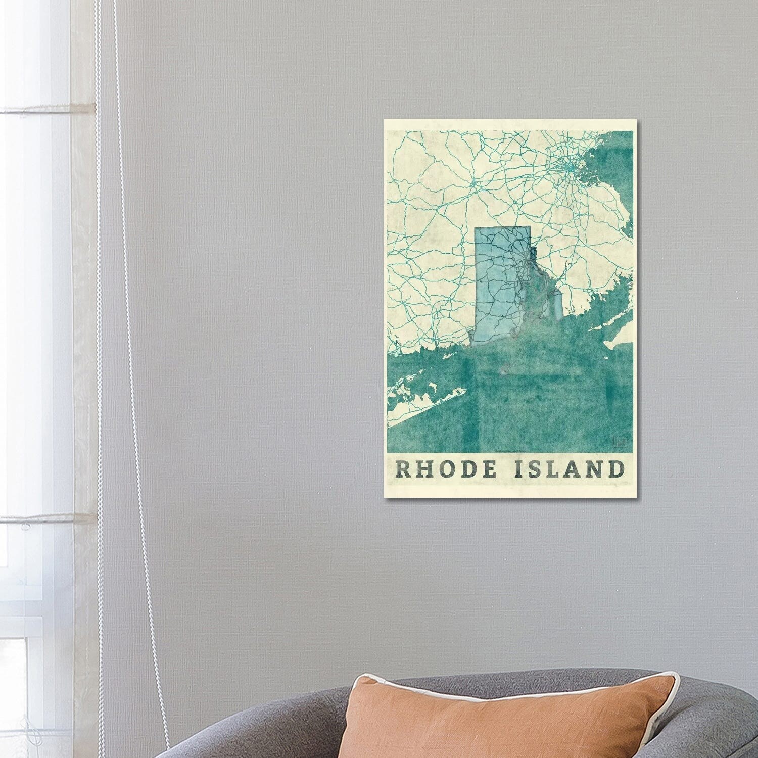 iCanvas "Rhode Island State Bluish" by WallDecorAddict Canvas Print