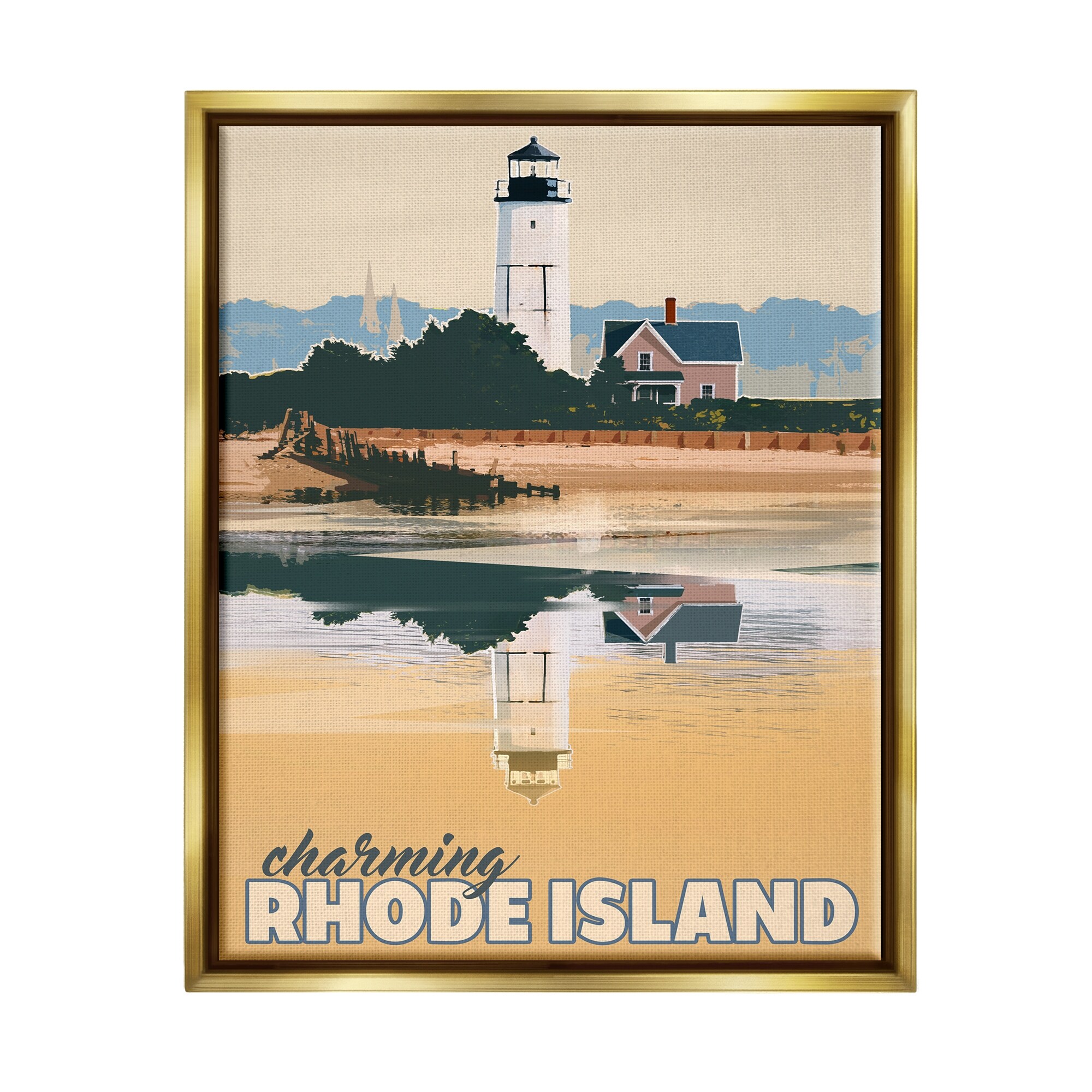 Stupell Industries Travel Charming Rhode Island Seaside Lighthouse Beacon Floater Frame, Design by David Owens Illustration