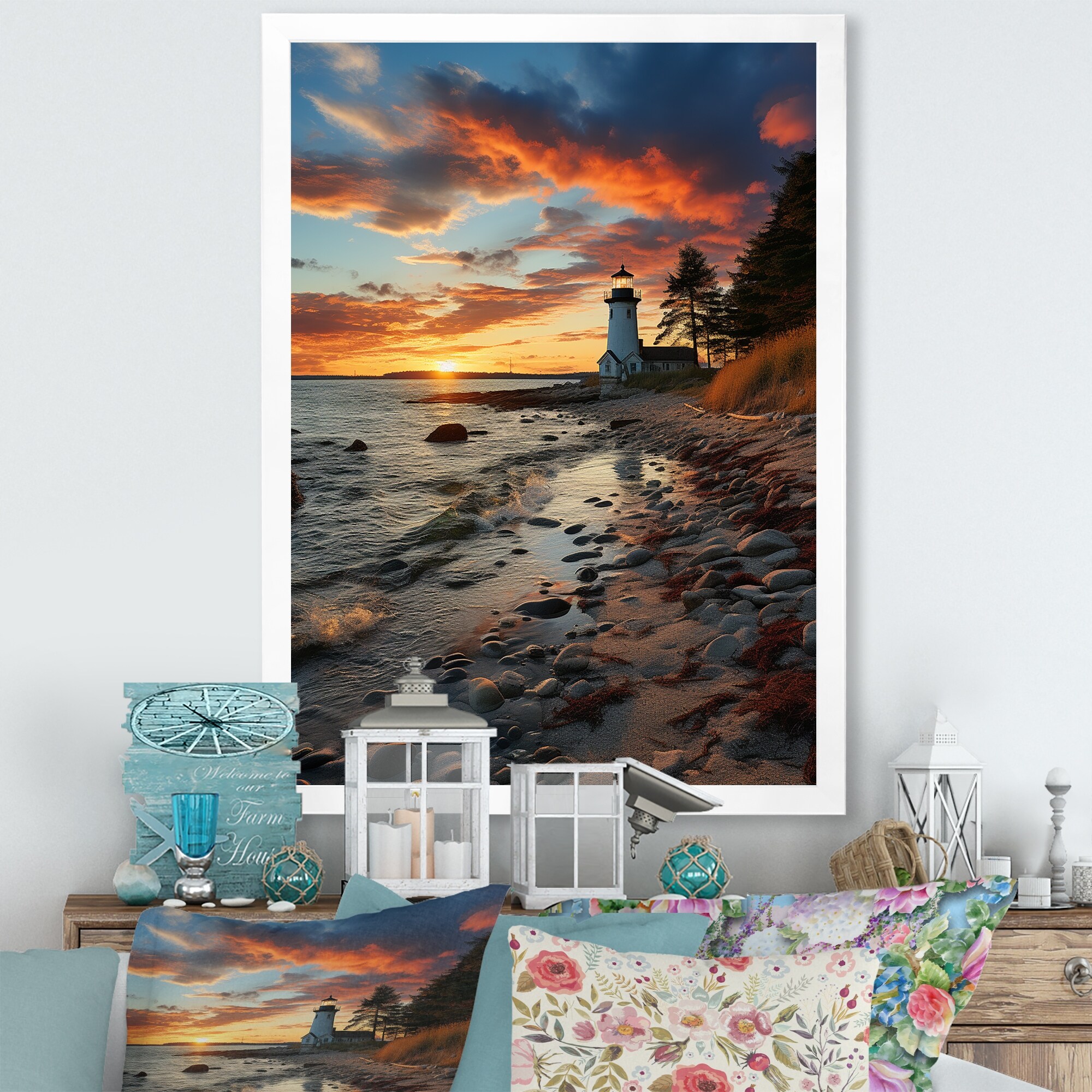 Designart "Rhode Island Landscape" Rhode Island Framed Wall Art Living Room