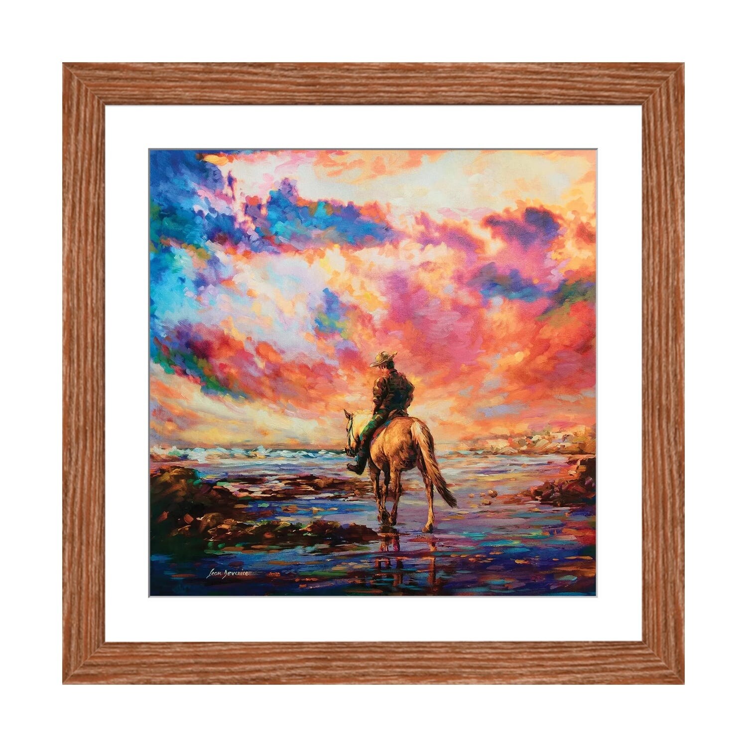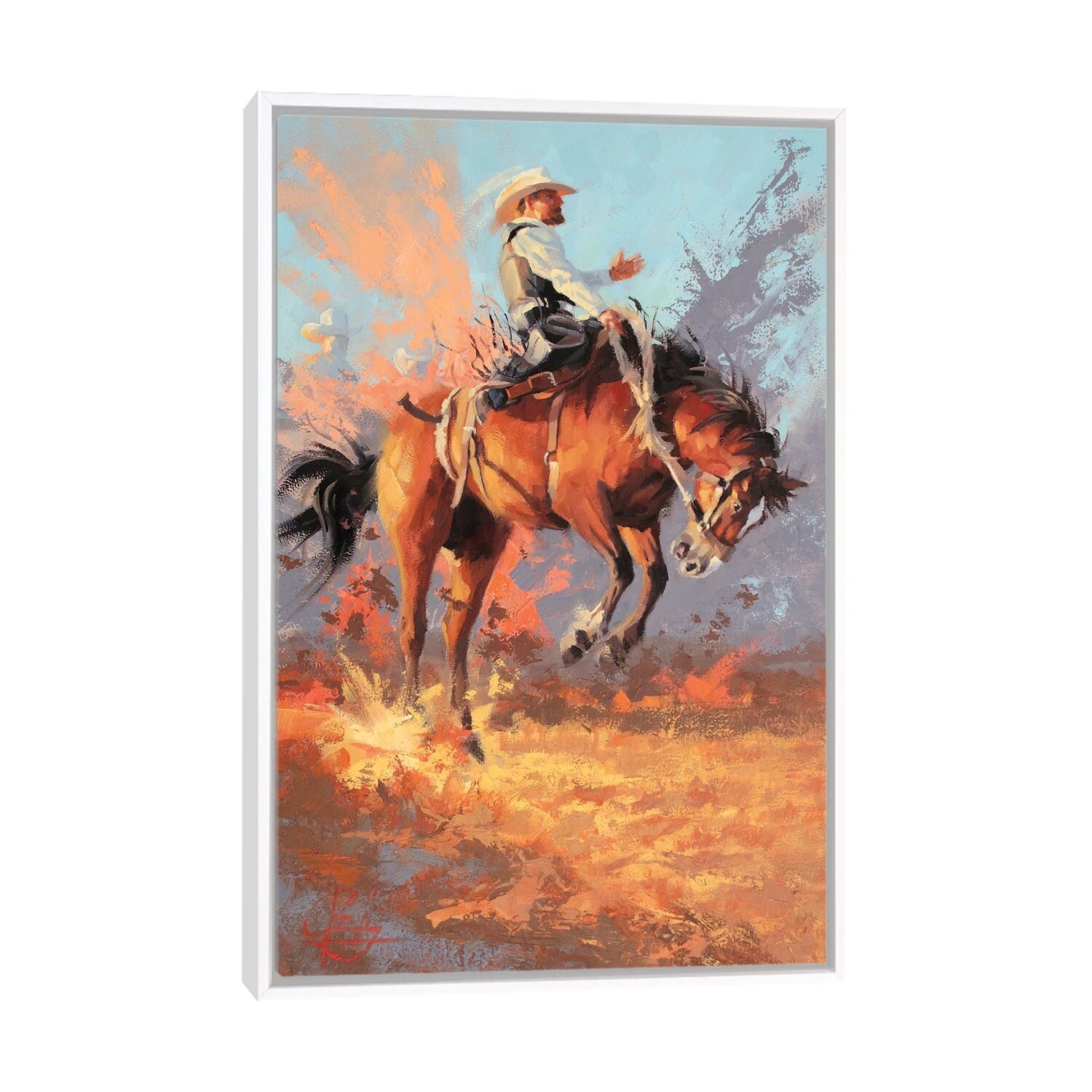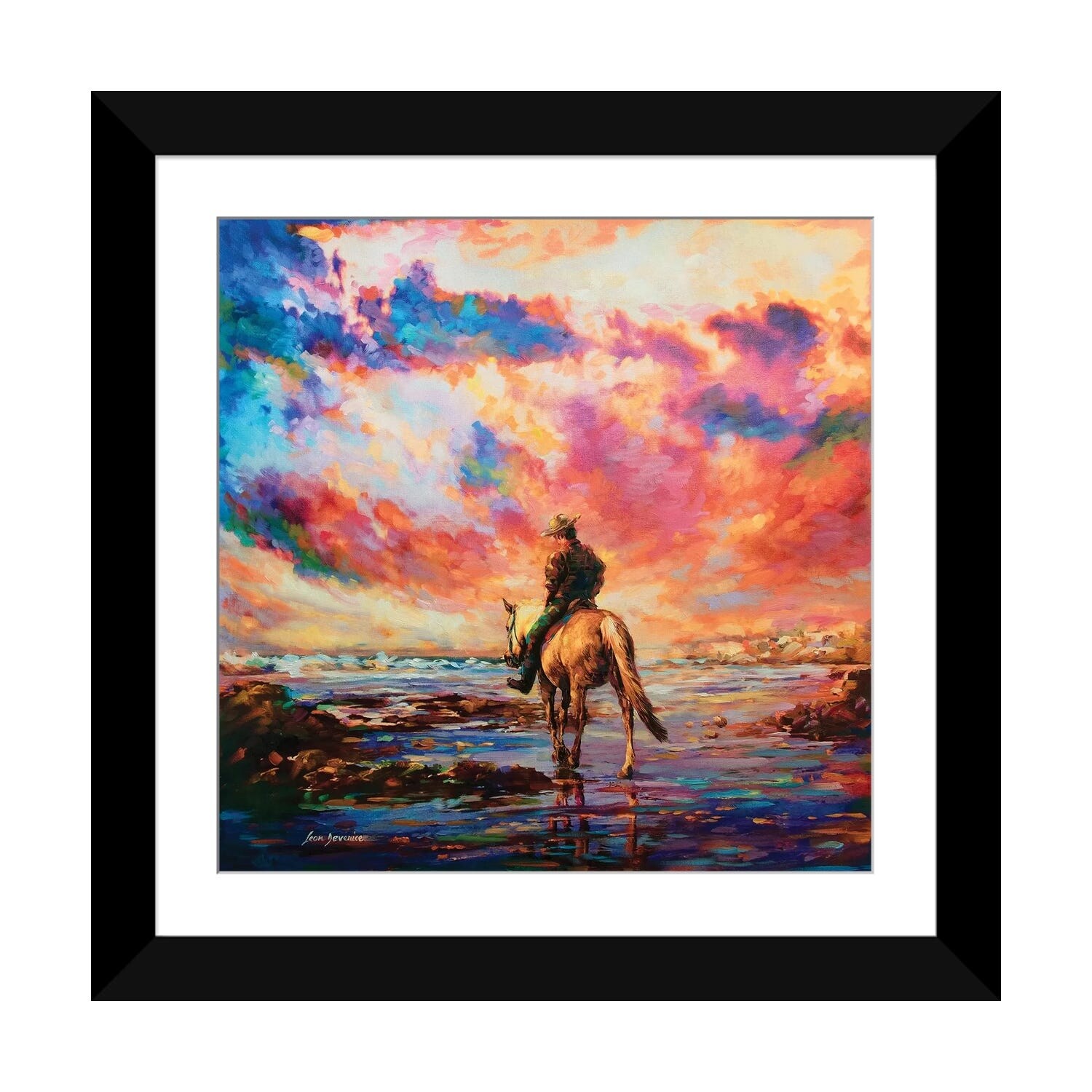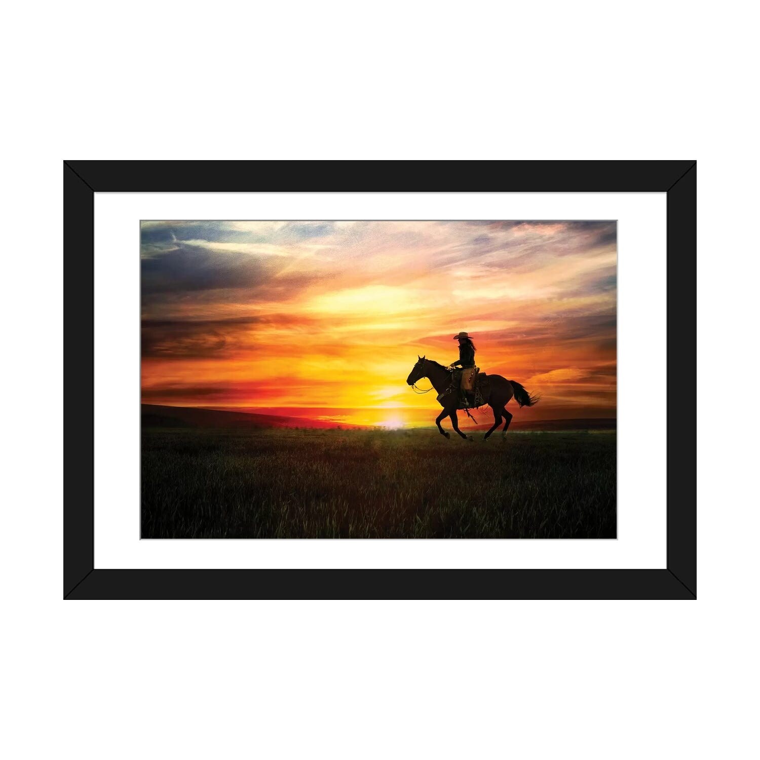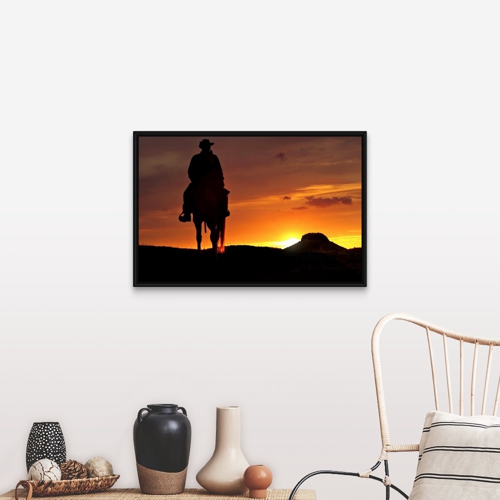 "Cowboy rides into the sunset" Black Float Frame Canvas Art