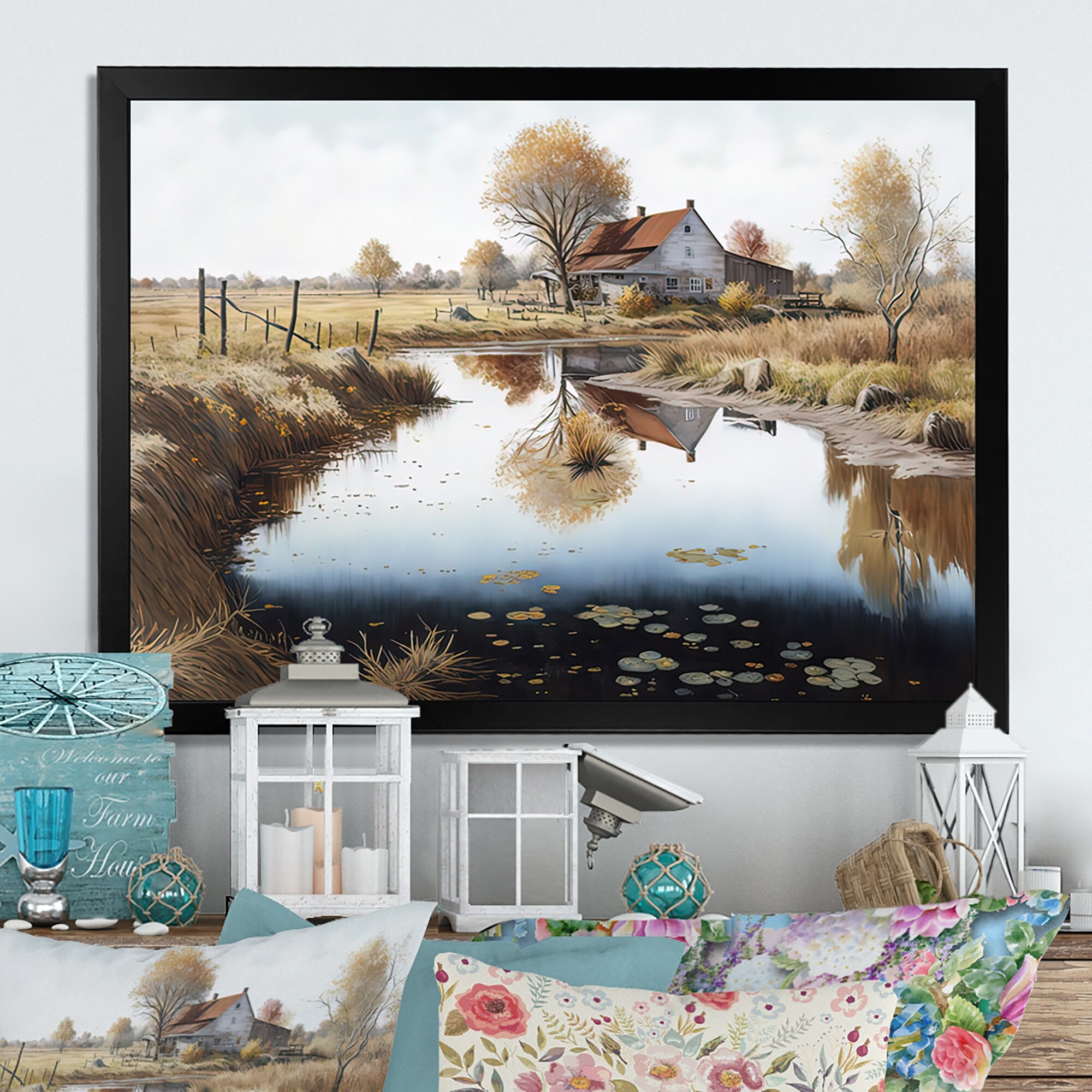 Designart "Small River to the Farm II" Farmhouse / Country Framed Art Print