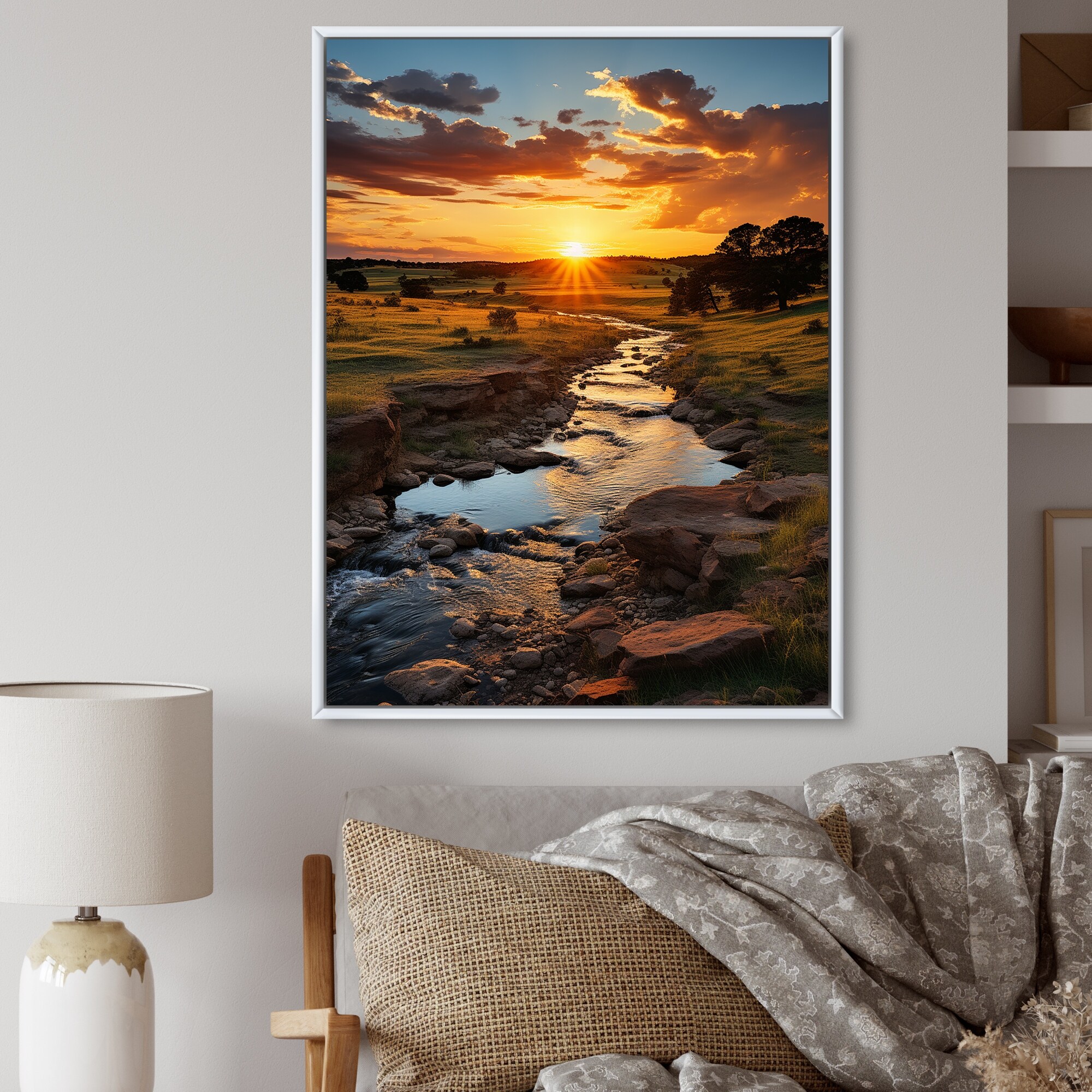 Designart "Oklahoma River Landscape I" Oklahoma Framed Wall Art Living Room