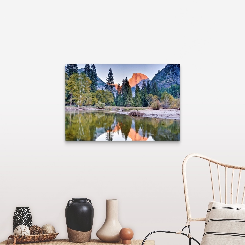 "Trees and mountain reflection in river." Canvas Wall Art