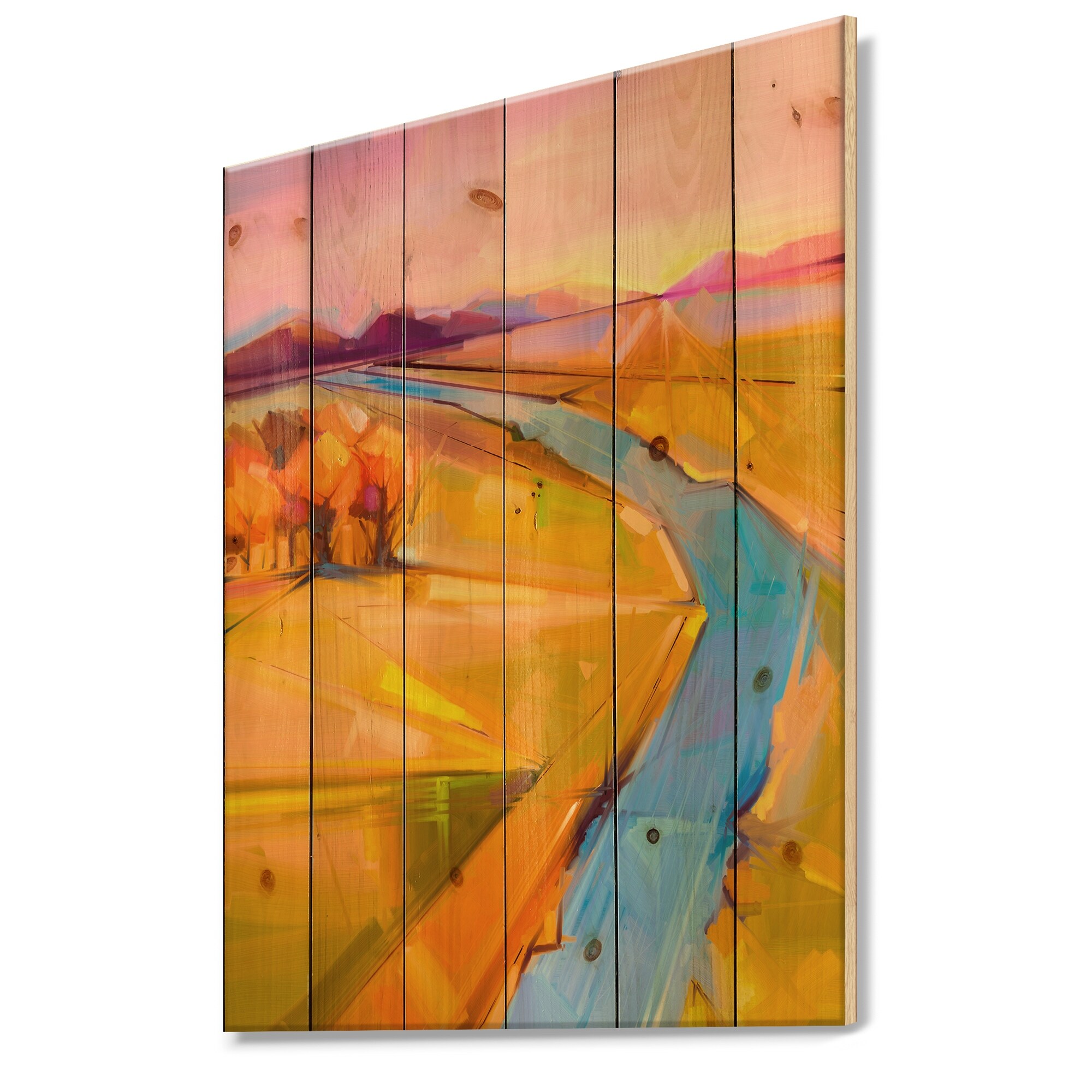 Designart 'River In Rural Landscape' Traditional Wood Wall Art Panels - Natural Pine Wood