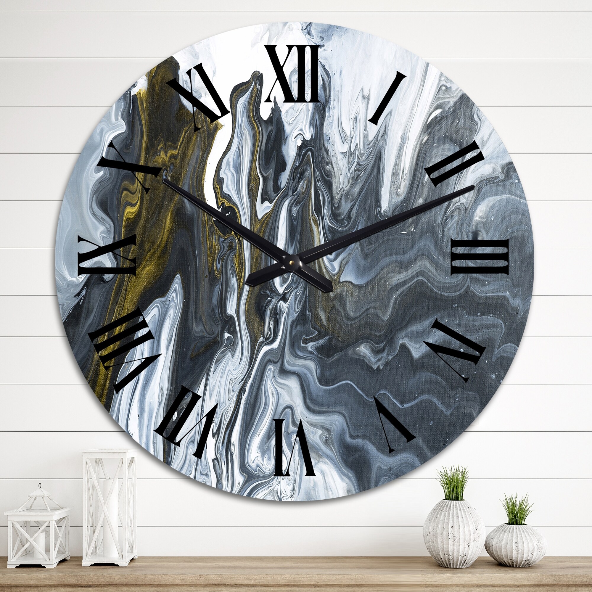 Designart 'Yellow Marble River in Liquid Art Universe II' Modern wall clock